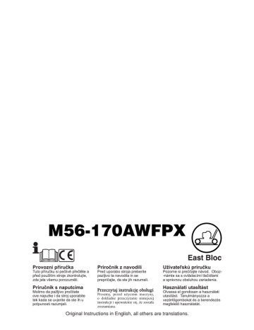 M56-170AWFPX East Bloc Provozní příručka Tuto příručku si pečlivě přečtěte a před použitím stroje zkontrolujte, zda jste všemu porozuměli. Priručnik s naputcima Molimo da pažljivo pročitate ove naputke i da stroj uporabite tek kada se uvjerite da ste ih u potpunosti razumjeli. Priročnik z navodili Pred uporabo stroja preberite pazljivo ta navodila in se prepričajte, da ste jih razumeli. Przeczytaj instrukcjê obs³ugi Prosimy, przed użyciem maszyny, o dokładne przeczytanie niniejszej instrukcji i upewnienie się, że została zrozumiana. Užívateľskú príručku Pozorne si prečítajte návod. Oboz-námte sa s ovládacími tlačidlami a správnou obsluhou zariadenia. Hasznàlati utasÍtàst Olvassa el gondosan a hasznàlati utasítàst. Tanulmànyozza a vezèrlőgombokat ès a berendezès megfelelő hasznàlatàt. Original Instructions in English, all others are translations. CZ SADRŽAJ SPIS TREŚCI STRANA PRZEPISY BEZPIECZEÑSTWA .................. 3-8 OPIS ZESPO£ÓW............................................. 9 INFORMACJE OGÓLNE................................10 MONTAŻ ................................................. 11-13 USTAWIENIA .......................................... 14-15 URUCHAMIANIE I ZATRZYMYWANIE 16-17 UŻYTKOWANIE...................................... 17-18 OBS£UGA ................................................ 19-22 INFORMACJE OGÓLNE................................23 SIGURNOSNI PROPISI .............................. 3-8 TEHNIČNI PODACI ........................................ 9 PREGLED .................................................... 10 SKLAPANJE ............................................11-13 PODEŠAVANJE ...................................... 14-15 POKRETANJE I ZAUSTAVLJANJE ......... 16-17 UPORABA ............................................... 17-18 ODRŽAVANJE ......................................... 19-22 OPĆE INFORMACIJE .................................. 23 HR OBSAH STR. SK STRANA OBSAH STRANA BEZPEČNOSTNÍ POKYNY......................... 3-8 BEZPEČNOSTNÉ POKYNY ....................... 3-8 TECHNICKÉ ÚDAJE ...................................... 9 TECHNICKÉ ÚDAJE ...................................... 9 PŘEHLED..................................................... 10 PREHĽAD .................................................... 10 SESTAVENÍ ..............................................11-13 MONTÁŽ ..................................................11-13 NASTAVENÍ ............................................. 14-15 NASTAVENIA .......................................... 14-15 SPUŠTĚNÍ A VYPNUTÍ ........................... 16-17 ŠTART A STOP ....................................... 16-17 POUŽITÍ .................................................. 17-18 POUŽITIE ................................................ 17-18 ÚDRŽBA .................................................. 19-22 ÚDRŽBA .................................................. 19-22 OBECNÉ INFORMACE ................................ 23 VŠEOBECNÉ INFORMÁCIE........................ 23 SI VSEBINA HU STRAN TARTALOM CÌMOLDAL VARNOSTNI PREDPISI .............................. 3-8 BIZTONSÁGI ELŐÍRÁSOK ......................... 3-8 TEHNIČNI PODATKI ...................................... 9 TECHNIKAI ADATOK ..................................... 9 PREGLED .................................................... 10 ÁTTEKINTÈS ............................................... 10 SESTAVLJANJE .......................................11-13 ÖSSZESZERELÈS...................................11-13 NASTAVITVE ........................................... 14-15 BEÁLLÍTÁS ............................................. 14-15 ZAGON IN IZKLOP ................................. 16-17 BEINDÍTÁS ÈS KIKAPCSOLÁS.............. 16-17 UPORABA ............................................... 17-18 HASZNÁLAT............................................ 17-18 VZDRŽEVANJE ....................................... 19-22 KARBANTARTÁS .................................... 19-22 SPLOŠNE INFORMACIJE ........................... 23 ÁLTALÁNOS INFORMÁCIÓK ...................... 23 2 Bezpečnostní pokyny pro ruční rotační sekačka na trávu CZ DLEŽITÉ: Tato traktorová sekačka dokáže vážně poranit končetiny a odmršt’ovat předměty. Nedodržení následujících bezpečnostních pokynů může mít za následek vážná nebo smrtelná poranění. I. Školení – Průprava • Pečlivě si přečtěte instrukce. Seznamte se s ovládacími prvky a správným použitím stroje. • Nikdy nedovolte dětem, nebo osobám, které nebyly seznámeny s těmito instrukcemi, aby použily sekačku. Sekačku nesmí obsluhovat osoby mladší 18 let. • Nikdy nesekejte, pokud se v blízkosti pohybují lidé, zejména dětí a domácí zvířata. • Mějte vždy na paměti, že obsluha stroje nebo uživatel, je odpovědný za nehody nebo za rizika, způsobené jiným osobám nebo na jejich majetku. • Před spuštěním motoru vypněte všechny nože a jejich pohon. • Nastartujte nebo zapněte motor podle pokynů a s dostatečnou vzdáleností nožů od nohou. • Při spuštění motoru nezvedejte sekačku, s výjimkou modelů, které je třeba při zapínání zvedat. V tomto případě, nezvedejte výše, než je nutné a zvedejte pouze tu část, která je od uživatele vzdálenější. • Nezapínejte motor pokud stojíte na straně odpadního otvoru. • Nestrkejte ruce a nohy do blízkosti nebo pod rotační nože. Vždy udržujte odpadní otvor volný. • Nikdy nezvedejte a nepřenášejte sekačku při zapnutém motoru. • Vypněte motor a vytáhněte napájecí kabel: - před odstraňováním materiálu ucpávajícího nůž nebo vyhazovací žlab; - před kontrolou, čištěním nebo údržbou traktoru; - po nárazu na cizí předmět. Zkontrolujte, zda není stroj poškozen a prověřïte stav sekačky před opětovným nastartováním a provozováním stroje; -