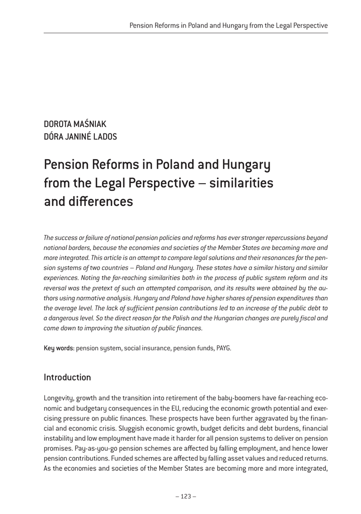 Pension reforms in Poland and Hungary from the Legal Perspective