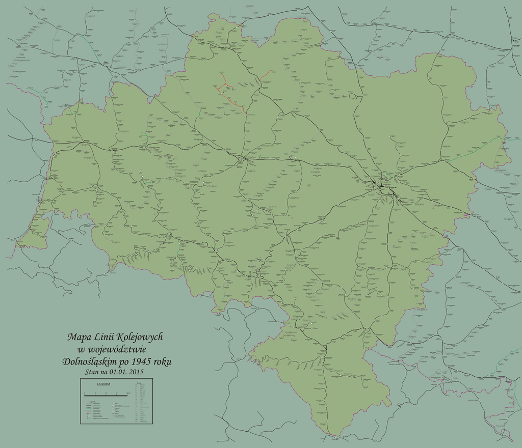 Linie kolejowe w woj. dolnośląskim po 1945 roku.