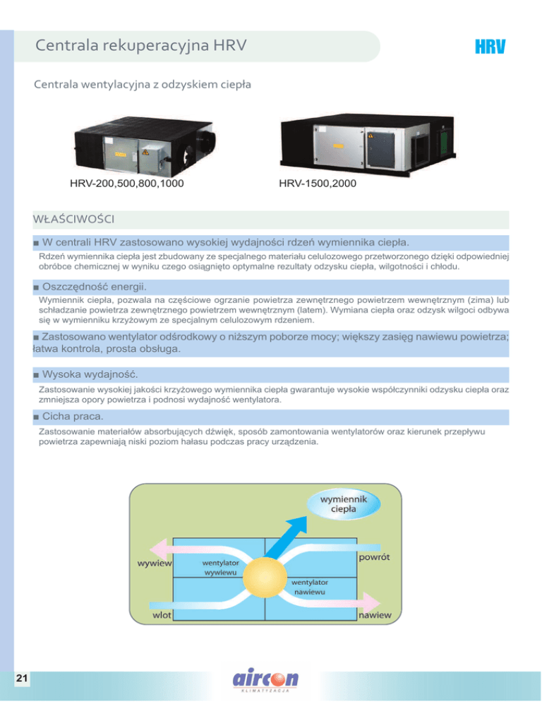 Centrala HRV, karta katalogowa