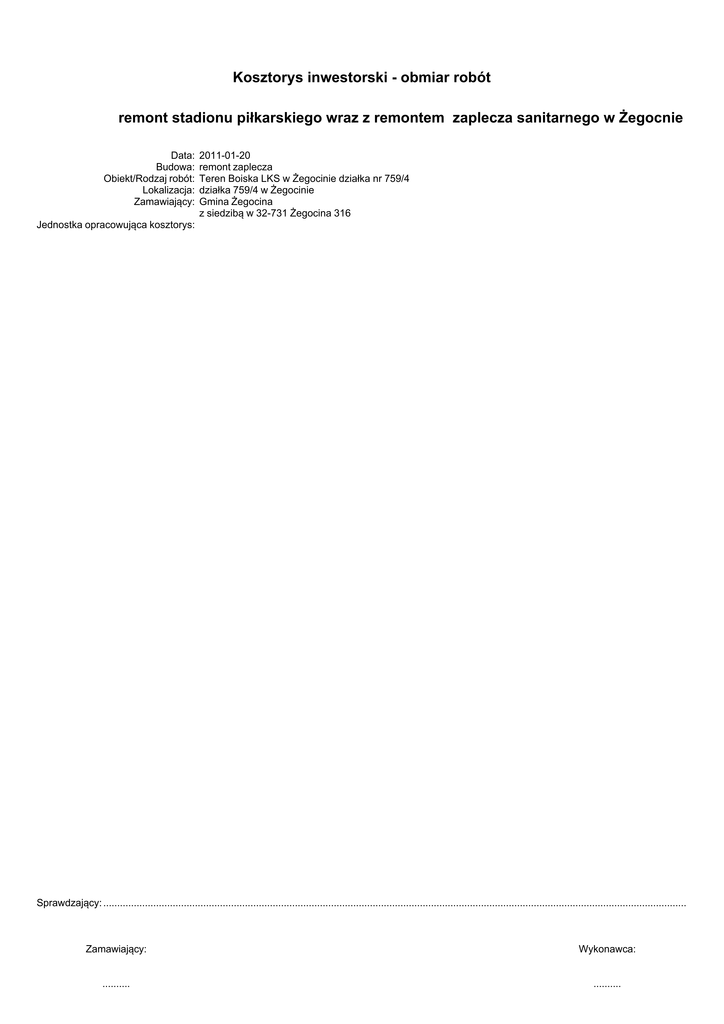 Przedmiar stadion zaplecze