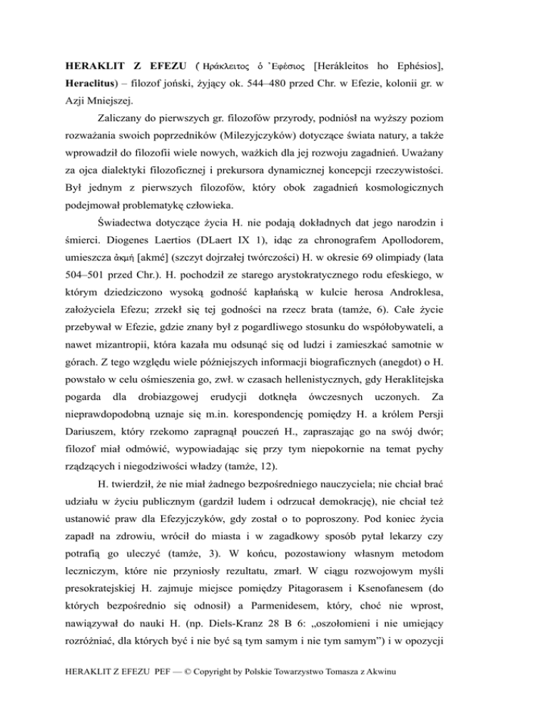 HERAKLIT Z EFEZU - Polskie Towarzystwo Tomasza z Akwinu