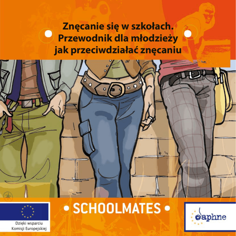 Znęcanie się w szkołach. Przewodnik dla młodzieży jak przeciwdziałać znęcaniu Dzięki wsparciu Komisji Europejskiej info: www.arcigay.it/schoolmates Projekt Schoolmates został zrealizowany przy wsparciu Komisji Europejskiej w ramach programu Daphne II. Dzięki wsparciu Komisji Europejskiej Tłumaczenie: Robert Biedroń, Patrycja Kulka Konsultacja merytoryczna wersji polskojęzycznej: dr Katarzyna Bojarska, Marta Abramowicz oraz Krzysztof Śmiszek. Podziękowania dla: Emanuele Pullega, Raffaele Lelleri, Laura Pozzoli, Margherita Graglia, Luca Pietrantoni, Giorgio Dell’Amico, Thomas Afton, Joel Giròn, Emilia Franchini. Daphne II Programme to combat violence against children, young people and women. Schoolmates, Znęcanie się w szkołach. Przewodnik dla młodzieży jak przeciwdziałać znęcaniu - 2008 Autorzy: Miles Gualdi, Matteo Martelli, Wolfgang Wilhelm, Robert Biedroń Ilustracje: Giulia Argnani; Projekt graficzny: ef9hi.org; Druk: Tipografia Negri Inne publikacje: Schoolmates, podręcznik główny Schoolmates, podręcznik dla dorosłych Schoolmates Niniejszy podręcznik przeznaczony jest dla młodzieży. Jego zadaniem jest dostarczenie informacji na temat zjawiska znęcania się. Szczególnym przedmiotem naszej uwagi będzie przemoc skierowana przeciw uczniom, którzy są gejami lub lesbijkami albo są postrzegani jako geje lub lesbijki. Znęcanie się każdego rodzaju, to nie dziecięca gra, żart lub błahostka. Znęcanie się nie jest „normalne”. Nikogo nie wzmacnia, nie pomaga nikomu dorosnąć i nie może być usprawiedliwiane w żaden sposób. Dlatego też nie wolno nam udawać, że nic złego się nie dzieje! Podręcznik ten został przetłumaczony na język angielski, włoski, polski i hiszpański. Czym jest znęcanie się? Znęcanie się to agresywne zachowanie zawierające pewne specyficzne elementy odróżniające je od innych typów konfliktu lub agresji. Znęcanie to trwająca dłuższy czas psychologiczna, słowna lub fizyczna opresja stosowana przez jedną osobę lub grupę osób przeciwko innej osobie (ofierze), postrzeganej jako słabsza i nie mająca możliwości lub nie umiejąca się bronić. Często do kwestii znęcania się nie przykłada się wystarczająco dużo uwagi i postrzega się takie zachowania jako zwykłe konflikty pomiędzy nastolatkami. Znęcanie się nie jest „zwykłym” konfliktem i charakteryzuje się pewnymi określonymi cechami: • oprawca z premedytacją i świadomie dokucza ofierze i ją prześladuje • oprawca nie czuje, że wyrządza krzywdę ofierze i jej nie współczuje, więc nie powstrzymuje się od swoich zachowań • zachowania o charakterze znęcania się występują uporczywie • istnieje dysproporcja sił pomiędzy oprawcą a ofiarą (ofiara jest lub jest postrzegana jako słabsza od osoby znęcającej się) Przewodnik dla młodzieży Czym jest znęcanie się? • W typowym konflikcie pomiędzy nastolatkami żadna z wymienionych wyżej cech się nie pojawia. Osoby zaangażowane w taki konflikt: · potrafią bronić swoich racji i dyskutować z drugą stroną · szukają sprawiedliwych rozwiązań, a w razie potrzeby przepraszają za swoje zachowanie · negocjują w celu zaspokojenia swoich potrzeb · potrafią zmienić temat rozmowy lub są w stanie opuścić sytuację konfliktową. To, co sprawia, że agresywne zachowanie zaczyna być znęcaniem się, to nie fakt, iż sprawca został sprowokowany („Obraziłem ją. Ponieważ ona do tego doprowadziła”, „Biliśmy się. Bo to on mnie obraził”), ale to, kim jest ofiara („Obraziłam ją ponieważ jest czarna/gruba/ nosi okulary/ jest Żydówką/ kujonką itd., „Biliśmy się ponieważ on jest gejem/niepełnosprawny/muzułmaninem/itd.”). • Czym jest znęcanie się? Przewodnik dla młodzieży Jakie są możliwe przejawy znęcania się? Kiedy myślimy o znęcaniu się, od razu wyobrażamy sobie grupę ludzi, którzy fizycznie nękają ofiarę. To może być jedna z form znęcania się. Pamiętaj jednak, że znęcanie się może przejawiać się na wiele sposobów: obraźliwe słowa mogą ranić bardziej niż czyny… PRZEMOC FIZYCZNA PRZEMOC SŁOWNA • atak; • napastowanie seksualne; • nadużywanie swojej przewagi nad inną osobą; • fizyczne zaczepki lub dokuczanie; • zmuszanie innej osoby do robienia nieprzyjemnych rzeczy; • rzucanie w kogoś przedmiotami. • obelgi; • bezpośrednie obrażanie ofiary; • plotki i obraźliwe żarty; • groźby; PRZEMOC PSYCHICZNA • poniżanie; • wykluczanie/izolacja/milczenie; • pisanie na ścianach (np. w toalecie lub na korytarzu); • wulgarne gesty; • śledzenie/szpiegowanie; Przemoc słowna może być • obraźliwe SMSy i MMSy; także wymierzona w rodzinę • wiadomości na forach i w przyjaciół ofiary po to, internetowych lub tzw. „pokojach aby jeszcze bardziej jej do czatowania” (które z reguły dokuczyć. są anonimowe w odróżnieniu od SMSów, pochodzących z konkretnych telefonów); • telefony i e-maile (zawierające groźby, poniżające, wulgarne, zastraszające); • niszczenie rzeczy należących do ofiary; • straszenie; • gapienie się; • szantażowanie. Przewodnik dla młodzieży Czym jest znęcanie się? • Jak najczęściej usprawiedliwia się znęcanie? Ludzie zachowujący się agresywnie lub dopuszczający znęcania się często próbują usprawiedliwić swoje czyny. Winą za swoje zachowanie próbują obarczyć ofiarę swojej agresji („Robię to, ponieważ on jest czarny, niepełnosprawny, jest gejem, dlatego, że ona jest Arabką…”). Wiele powodów jest podawanych jako usprawiedliwienie swojego agresywnego zachowania, a najczęstszymi z nich są: • rasa i pochodzenie etniczne („on jest czarny”, „ona jest Żydówką”) • religia („on jest świadkiem Jehowy”, „ona jest muzułmanką”) • pochodzenie geograficzne („ona jest ze wsi”, „on jest Ruskiem”) • status ekonomiczny i brak możliwości dostępu do różnego rodz