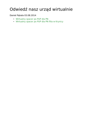 Odwiedź nasz urząd wirtualnie Daniel Pękala 03.08.2014 • Wirtualny spacer po PUP dla PN • Wirtualny spacer po PUP dla PN filia w Krynicy