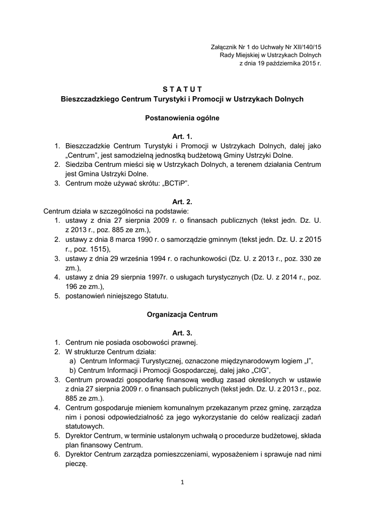 S T A T U T Bieszczadzkiego Centrum Turystyki i Promocji w