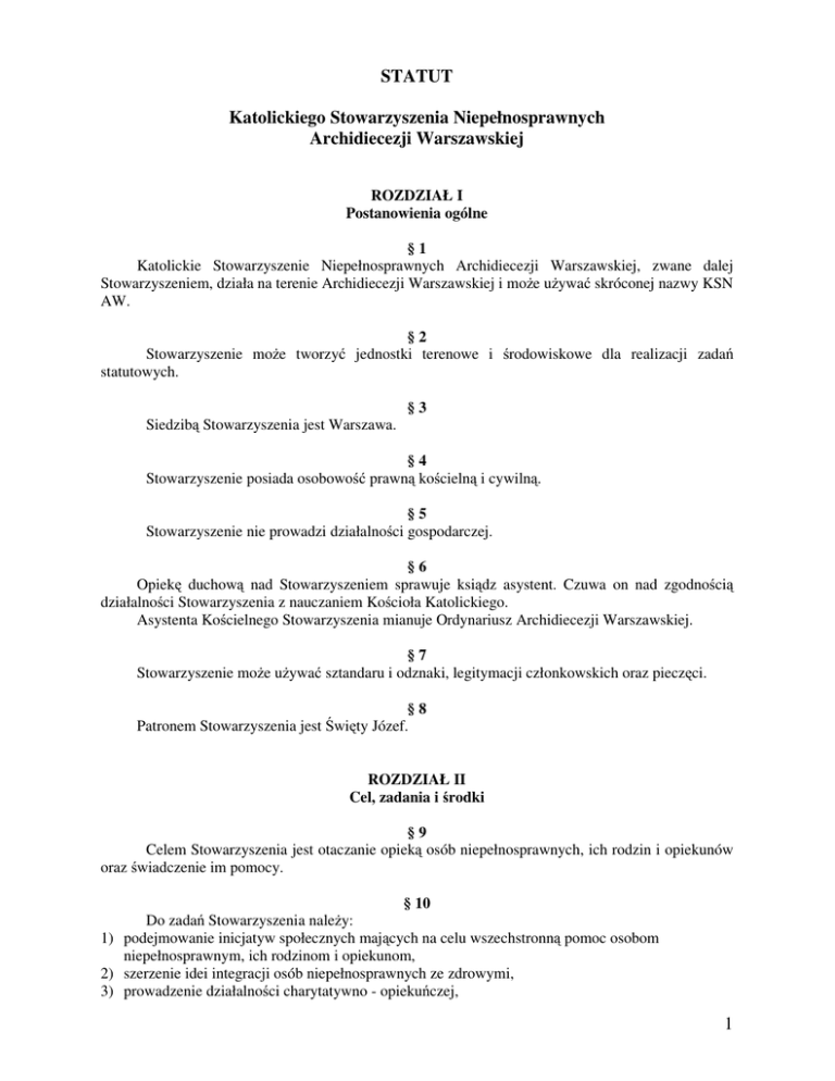 1 STATUT Katolickiego Stowarzyszenia Niepełnosprawnych