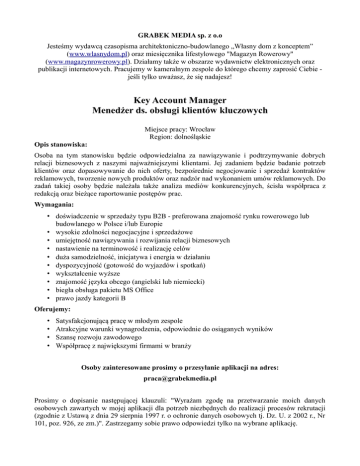 Key Account Manager - Grabek Media sp. z oo