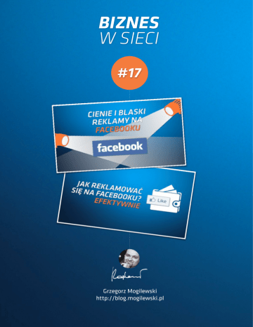 BIZNES W SIECI #17 Grzegorz Mogilewski http://blog.mogilewski.pl BIZNES W SIECI odc. 17 Jak efektywnie reklamować się na Facebooku? Dzisiejsza część teoretyczna poświęcona jest temu, czy być czy nie być na Facebooku (w sposób płatny)? Czyli innymi słowy, cienie i blaski obecności, reklamowania się na Facebooku. Zacznijmy od tego czym jest reklama na Facebooku, jak ona wygląda. Oto (nawiązanie do prezentacji) typowy wygląd strony użytkownika po zalogowaniu się na Facebooka. Po prawej stronie mamy właśnie reklamy. I to jest raczej oczywiste, ale nie dla wszystkich jest również oczywistym fakt, że reklamy mogą pojawiać się również na naszej tablicy, bezpośrednio na naszym “wallu”. To również mogą być reklamy. I bardzo często to są reklamy, które wyglądają jak typowe aktywności naszych znajomych. Zaraz opowiem w jaki sposób można z tego skorzystać. A zatem co można reklamować za pomocą Facebooka? Po pierwsze, o czym nie wszyscy wiedzą, można być obecnym płacąc Facebookowi za reklamy, reklamując jednocześnie swoją stronę internetową spoza ekosystemu Facebooka - czyli naszą własną stronę internetową pod naszą własną domeną. Jest to bardzo efektywny model (o czym powiem za chwilę), ponieważ Facebook pozwala na bardzo precyzyjne docieranie z reklamą do specyficznie określonej grupy odbiorców. Zatem możemy w ten sposób reklamować naszą zewnętrzną stronę. Niemniej najczęściej na Facebooku reklamowane są strony firmowe marek na Facebooku czyli, Grzegorz Mogilewski http://blog.mogilewski.pl -2- mówiąc brzydko z angielskiego, fanpage. Najczęściej spotyka się właśnie ten sposób reklamy. Ale również można na Facebooku reklamować tzw. zdarzenie sponsorowane. To jest właśnie przykład tej reklamy w środku naszego “wall’a” (nawiązanie do prezentacji) - możemy zdecydować, że pewne zdarzenia, np. to, że ktoś polubił naszą stronę, będziemy traktowali jako reklamę, wyświetlając ją znajomym tego nowo zdobytego fana. Takim zdarzeniem również może być jakiś post, który uznajemy za szczególnie atrakcyjny i chcemy, aby więcej osób mogło do niego dotrzeć. Zaraz opowiem o tym w szczegółach. Dlaczego Facebook jest uważany przez wielu specjalistów za nowego króla reklamy w Internecie? Za system, który według wielu, bije na głowę dotychczas funkcjonujące systemy? Mimo, że ja się z tym nie zgadzam, to powiem jakie są dwie główne cechy, które czynią go faktycznie unikatowym, szczególnie w rękach osoby, która wie, co robi. Pierwszy aspekt jest związany z targetowaniem. Faktycznie Facebook pozwala nam bardzo precyzyjnie dotrzeć do odbiorców, którzy spełniają określone cechy, zaraz opowiem jakie. A drugi element, to tzw. społeczny dowód zaufania. Czyli to, że nasze działania reklamowe podlegają społecznej akceptacji w ten sposób, o którym powiedziałem przed chwilą - to, że możemy wykorzystać fakt, że lubią nas pewne osoby i zareklamować się do przyjaciół naszego fana. Dzięki czemu ludzie będą wiedzieli, że jego znajomy, jest np. naszym fanem, albo lubi / przekazuje dalej nasze treści. Popatrzmy jak działa targetowanie w praktyce. Oprócz tego, że można zdefiniować grupę docelową poprzez miejsce zamieszkania, również można zdecydować poprzez miejsce, w którym się urodził i np. zmienił Grzegorz Mogilewski http://blog.mogilewski.pl -3- swoje miejsce zamieszkania. Czyli np. możemy wysłać reklamy do internautów, którzy np. właśnie zmienili swoje miejsce zamieszkania. Dla każdej firmy, która zajmuje się nieruchomościami jest to niezwykle cenna informacja. Kolejnym poziomem jest możliwość definiowania zainteresowań naszych potencjalnych fanów, naszych potencjalnych konsumentów. Możemy zdefiniować, że chcemy np. docierać z reklamą do osób, które mieszkają w Warszawie dopiero od tygodnia, i które lubią określone aktywności (np. biegać). Albo które, lubią np. inne, określone strony na Facebooku. Czyli możemy zdefiniować swoją grupę docelową bardzo precyzyjnie. Np. Facebook pozwala na to, żeby wyświetlić swoją reklamę tylko do osób, które są rodzicami dwulatków. Albo do osób, które tak jak powiedziałem, właśnie zmieniły miejsce zamieszkania. Albo do osób, które w ciągu najbliższego tygodnia będą miały urodziny. Nigdy w przeszłości nie dało się faktycznie zdobyć tych danych do celów reklamowych. Trzeci poziom jest myślę, że najbardziej atrakcyjny, ponieważ możemy z naszą reklamą docierać, tak jak już powiedziałem, do znajomych naszych fanów, wykorzystując w ten sposób społeczny dowód zaufania. Możemy również z naszą reklamą docierać bezpośrednio do naszych fanów. Możemy zadać pytanie „po co?”, skoro po to mamy swoich fanów, żeby do nich docierać w sposób organiczny, ale o tym opowiem za chwilę. Jak to wygląda jeżeli chodzi o społeczny dowód zaufania? Wyobraźmy sobie, że to jest mój post (nawiązanie do prezentacji), który reklamuję jako zdarzenie sponsorowane, a to jest Jan Kowalski, który lubi moją treść, lubi mój post. Wszyscy znajomi naszego Jana Kowalskiego zobaczą, że Jan lubi naszą treść (jeżeli oczywiście za to zapłacimy FB). Zobaczą to na Grzegorz Mogilewski http://blog.mogilewski.pl -4- swoich stronach Facebookowych, czyli pomyślą: „yhm, Jan Kowalski lubi tę stronę, może coś tym jest.” Pomyślmy jakie duże możliwości daje to reklamodawcom. Wyobraźmy sobie np. że prowadzę salon, w którym można zmieniać opony z zimowych na letnie i odwrotnie. Prowadzę swój fanpage na Facebooku, moimi fanami są moi prawdziwi, offlinowi klienci. Wyobraźmy sobie zatem reklamę, kierowaną do znajomych moich fanów (emitowaną oczywiście w okresie wczesno zimowym lub wiosennym), która mówi: „Twoi znajomi już zmienili opony. Dla znajmoych moich klientów - zniżka!”. Dodatkowo wykorzystujemy to, że Facebook