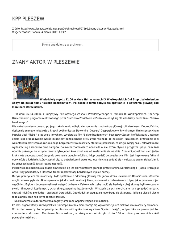 KPP PLESZEW ZNANY AKTOR W PLESZEWIE
