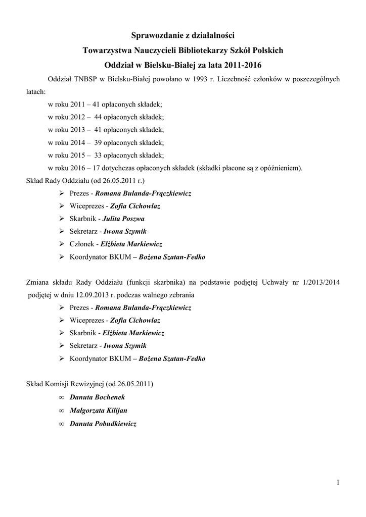 Sprawozdanie 2011-2016 - TNBSP Bielsko