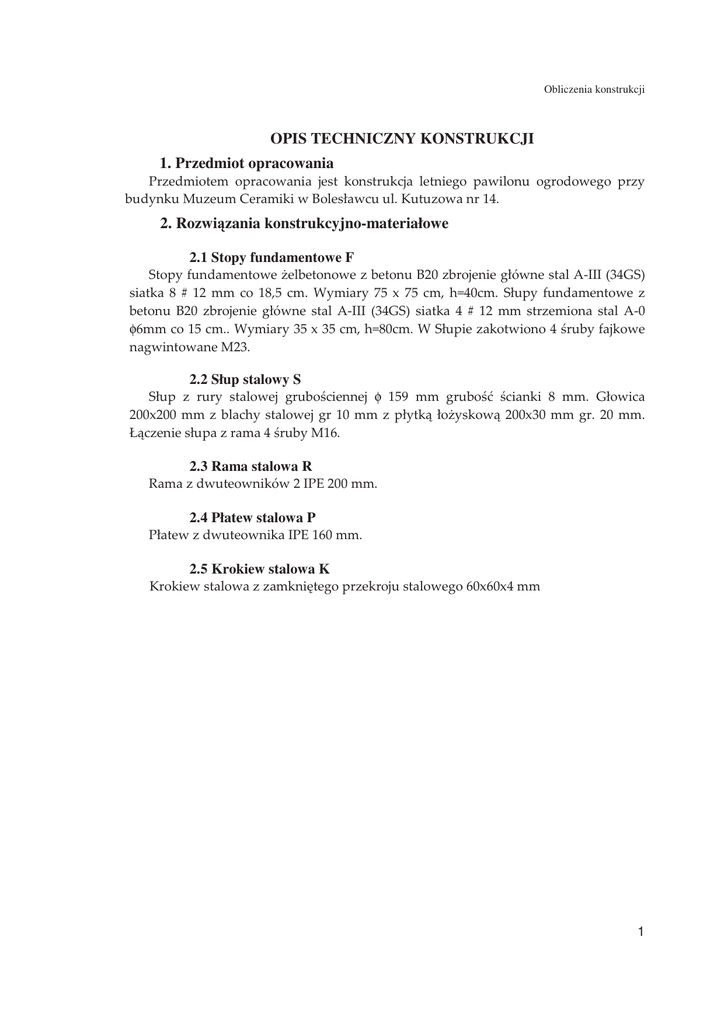schemat wiata stalowa - Muzeum Ceramiki w Bolesławcu