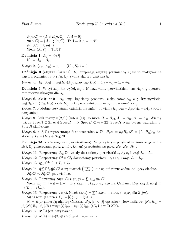 Uwaga 7. Podobne rozwa»ania dziaªaj¡ dla su(n), bowiem iHij , Aij − Aji , iAij + iAji tworz¡