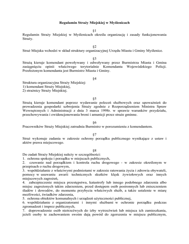 Regulamin Straży Miejskiej w Myślenicach §1 Regulamin Straży