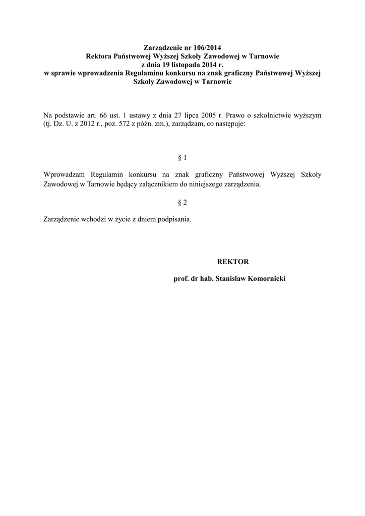 Zarządzenie nr 106/2014 Rektora Państwowej Wyższej Szkoły