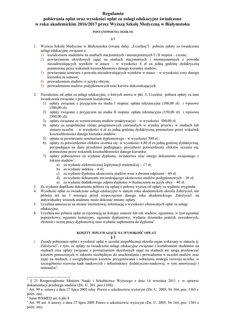 regulamin opłat - Wyższa Szkoła Medyczna w Białymstoku