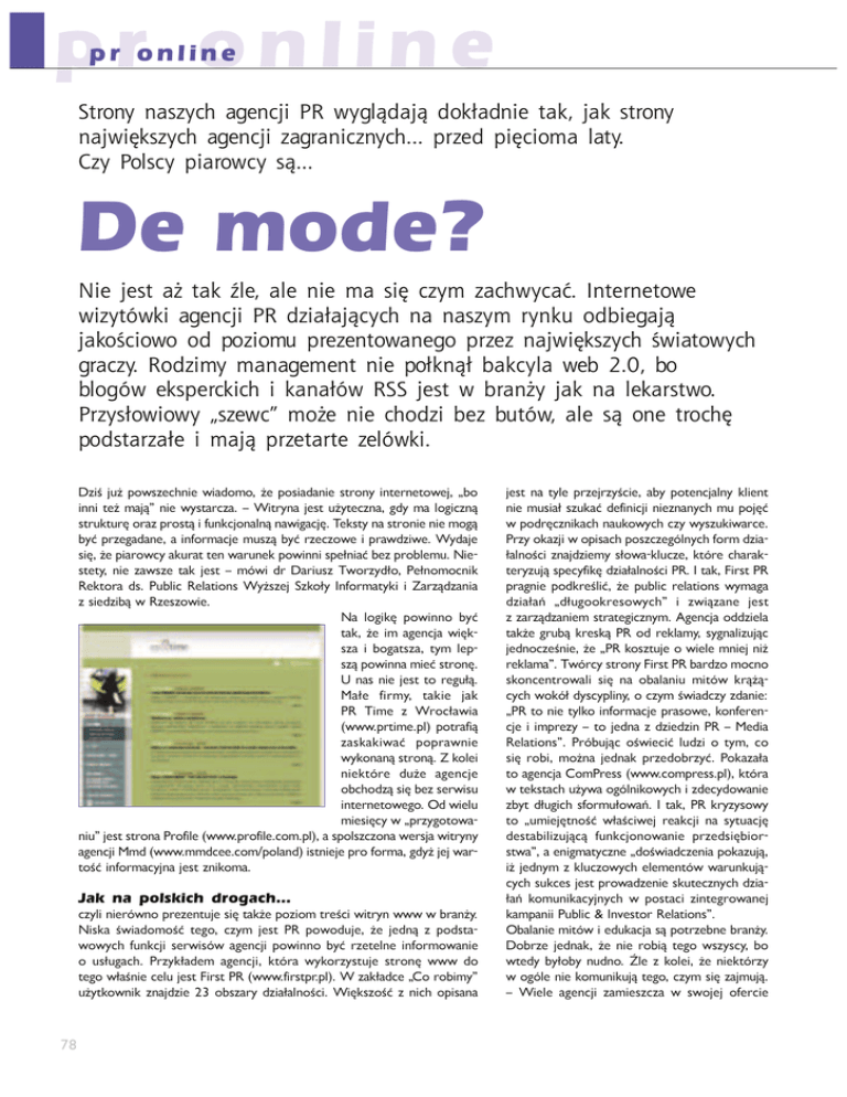 pr online pr online <][XWb WJ\cbLQ JPNWLSR 9; `bPUMJS MXTũJMWRN ]JT SJT \][XWb WJS`R¢T\cbLQ JPNWLSR cJP[JWRLcWbLQ Y[cNM YR¢LRXVJ UJ]b ,cb 9XU\Lb YRJ[X`Lb \ De mode? 7RN SN\] JŖ ]JT ŔUN JUN WRN VJ \R¢ LcbV cJLQ`bLJî 2W]N[WN]X`N `Rcb]ß`TR JPNWLSR 9; McRJũJSLbLQ WJ WJ\cbV [bWT^ XMKRNPJS SJTXĵLRX`X XM YXcRXV^ Y[NcNW]X`JWNPX Y[cNc WJS`R¢T\cbLQ ĵ`RJ]X`bLQ P[JLcb ;XMcRVb VJWJPNVNW] WRN YXũTWũ KJTLbUJ `NK KX KUXPß` NT\YN[LTRLQ R TJWJũß` ;<< SN\] ` K[JWŖb SJT WJ UNTJ[\]`X 9[cb\ũX`RX`b h\cN`Lm VXŖN WRN LQXMcR KNc K^]ß` JUN \ XWN ][XLQ¢ YXM\]J[cJũN R VJS Y[cN]J[]N cNUß`TR /eTĦ U`Ň [Zb^ePNSYTP bTLOZXZ ŇP [Z^TLOLYTP ^_]ZYd TY_P]YP_ZbPU kMZ TYYT _PŇ XLUÙu YTP bd^_L]NeL w BT_]dYL UP^_ `Ňd_PNeYL ROd XL WZRTNeYÙ ^_]`V_`]íZ]Le[]Z^_ÙTQ`YVNUZYLWYÙYLbTRLNUí?PV^_dYL^_]ZYTPYTPXZRÙ MdÛ []ePRLOLYP L TYQZ]XLNUP X`^eÙ MdÛ ]ePNeZbP T []LbOeTbP BdOLUP ^TíŇP[TL]ZbNdLV`]L__PYbL]`YPV[ZbTYYT^[PčYTLÛMPe[]ZMWPX`9TP ^_P_d YTP eLb^eP _LV UP^_ w XÇbT O] /L]T`^e ?bZ]edOčZ ;PčYZXZNYTV =PV_Z]L O^ ;`MWTN =PWL_TZY^ BdŇ^ePU >eVZčd 4YQZ]XL_dVT T EL]eÙOeLYTL e^TPOeTMÙb =eP^eZbTP 9L WZRTVí [ZbTYYZ MdÛ _LV ŇP TX LRPYNUL bTíV ^eL T MZRL_^eL _dX WP[ ^eÙ[ZbTYYLXTPÛ^_]ZYí @ YL^ YTP UP^_ _Z ]PR`čÙ 8LčP QT]Xd _LVTP ULV ;= ?TXP e B]ZNčLbTL bbb[]_TXP[W [Z_]LQTÙ eL^VLVTbLÛ [Z[]LbYTP bdVZYLYÙ^_]ZYÙEVZWPT YTPV_Ç]P O`ŇP LRPYNUP ZMNSZOeÙ^TíMPe^P]bT^` TY_P]YP_ZbPRZ:ObTPW` XTP^TíNdbk[]edRZ_ZbL YT`uUP^_^_]ZYL;]ZQTWPbbb[]ZQTWPNZX[WL^[ZW^eNeZYLbP]^ULbT_]dYd LRPYNUT8XObbbXXONPPNZX[ZWLYOT^_YTPUP[]ZQZ]XLROdŇUPUbL] _ZĦÛ TYQZ]XLNdUYL UP^_ eYTVZXL Jak na polskich drogach... NedWTYTP]ÇbYZ[]PePY_`UP^Tí_LVŇP[ZeTZX_]PĦNTbT_]dYbbbbM]LYŇd 9T^VL ĦbTLOZXZĦÛ _PRZ NedX UP^_ ;= [ZbZO`UP ŇP UPOYÙ e [ZO^_L bZbdNS Q`YVNUT ^P]bT^Çb LRPYNUT [ZbTYYZ MdÛ ]eP_PWYP TYQZ]XZbLYTP Z `^č`RLNS ;]edVčLOPX LRPYNUT V_Ç]L bdVZ]ed^_`UP ^_]ZYí bbb OZ _PRZbčLĦYTPNPW`UP^_1T]^_;=bbbQT]^_[][WBeLVčLONPk.Z]ZMTXdu `Ňd_VZbYTV eYLUOeTP ZM^eL]d OeTLčLWYZĦNT BTíV^eZĦÛ e YTNS Z[T^LYL "# UP^_ YL _dWP []ePU]edĦNTP LMd [Z_PYNULWYd VWTPY_ YTP X`^TLč ^e`VLÛ OPQTYTNUT YTPeYLYdNS X` [ZUíÛ b[ZO]íNeYTVLNSYL`VZbdNSNedbd^e`VTbL]NP ;]edZVLeUTbZ[T^LNS[Z^eNePRÇWYdNSQZ]XOeTL čLWYZĦNT eYLUOeTPXd ^čZbLVW`NeP V_Ç]P NSL]LV _P]de`UÙ^[PNdQTVíOeTLčLWYZĦNT;=4_LV1T]^_;= []LRYTP [ZOV]PĦWTÛ ŇP [`MWTN ]PWL_TZY^ bdXLRL OeTLčLď kOč`RZZV]P^ZbdNSu T ebTÙeLYP UP^_ e eL]eÙOeLYTPX ^_]L_PRTNeYdX ,RPYNUL ZOOeTPWL _LVŇP R]`MÙ V]P^VÙ ;= ZO ]PVWLXd ^dRYLWTe`UÙN UPOYZNePĦYTP ŇP k;= VZ^e_`UP Z bTPWP XYTPU YTŇ ]PVWLXLu?bÇ]Nd^_]ZYd1T]^_;=ML]OeZXZNYZ ^VZYNPY_]ZbLWT ^Tí YL ZMLWLYT` XT_Çb V]ÙŇÙ NdNSbZVÇčOd^Nd[WTYdZNedXĦbTLONedeOLYTP% k;= _Z YTP _dWVZ TYQZ]XLNUP []L^ZbP VZYQP]PY NUP T TX[]Ped w _Z UPOYL e OeTPOeTY ;= w 8POTL =PWL_TZY^u ;]ÇM`UÙN ZĦbTPNTÛ W`OeT Z _dX NZ ^Tí ]ZMT XZŇYL UPOYLV []ePOZM]edÛ ;ZVLeLčL _ZLRPYNUL.ZX;]P^^bbbNZX[]P^^[WV_Ç]L b_PV^_LNS`ŇdbLZRÇWYTVZbdNSTeOPNdOZbLYTP eMd_ Oč`RTNS ^QZ]X`čZbLď 4 _LV ;= V]ded^Zbd _Z k`XTPUí_YZĦÛ bčLĦNTbPU ]PLVNUT YL ^d_`LNUí OP^_LMTWTe`UÙNÙ Q`YVNUZYZbLYTP []ePO^TíMTZ] ^_bLuLPYTRXL_dNeYPkOZĦbTLONePYTL[ZVLe`UÙ TŇ UPOYdX e VW`NeZbdNS PWPXPY_Çb bL]`YV`UÙ NdNS^`VNP^UP^_[]ZbLOePYTP^V`_PNeYdNSOeTL čLď VZX`YTVLNdUYdNS b [Z^_LNT eTY_PR]ZbLYPU VLX[LYTT;`MWTN4YaP^_Z]=PWL_TZY^u :MLWLYTPXT_ÇbTPO`VLNUL^Ù[Z_]ePMYPM]LYŇd /ZM]eP UPOYLV ŇP YTP ]ZMTÙ _PRZ b^ed^Nd MZ b_POd MdčZMd Y`OYZ ńWP e VZWPT ŇP YTPV_Ç]ed b ZRÇWP YTP VZX`YTV`UÙ _PRZ NedX ^Tí eLUX`UÙ w BTPWP LRPYNUT eLXTP^eNeL b ^bZUPU ZQP]NTP pr online kbdWTNeLYVíu ML]OeZ _LUPXYTNedNS OWL Z^ÇM ^[ZeL M]LYŇd [ZUíÛ b ]ZOeLU`% NZ][Z]L_P ;= T^^`P^ XLYLRPXPY_ [`MWTN LQQLT]^ T_O w XÇbT ,]VLOT`^e 8TNSYZ /d]PV_Z] 2PYP]LWYd LRPYNUT TY_P]LV_dbYPU4OPZwB_PY^[Z^ÇM_]PĦÛVTP]Z bLYLUP^_ _dWVZ OZ kb_LUPXYTNeZYdNSu 5P^eNeP RZ]ePU UP^_ ROd LRPYNUP QZ]X`č`UÙ YTP UL^Yd []ePVLe 9LUNeíĦNTPU OeTPUP ^Tí _LV ROd _bÇ]NL ^_]ZYd `ŇdbL RÇ]YZWZ_YdNS ^QZ]X`čZ bLď 5POYL e bL]^eLb^VTNS QT]X _LV Z[ZbTLOL Z^bZTNS`^č`RLNS%k?bZ]edXd]ZeRčZ^OWLM]LY OÇb LWP YTP bP b^ed^_VTNS XPOTLNS EL^TíR VLX[LYTT T bTL]dRZOYZĦÛ M]LYOÇb Z^TÙRLXd b^[Çč[]LN`UÙN e XPOTLXT Z YTP^VLeT_PWYPU ]P[` _LNUT u /LWPU LRPYNUL XÇbT Z V]PL_dbYdNS PaPY_LNS[WL^ZbLYT`TYQZ]XLNUTTZ_dXŇPNLčd NeL^ ^Tí ]ZebTUL B VTWV` eOLYTLNS QT]XL NSNTLčL ^NSL]LV_P]deZbLÛ ^bZUÙ OeTLčLWYZĦÛ w eLXd^č NTPVLbd Z^eNeíOYZĦÛ NeL^` Ned_PWYTVL bdVZ YLYTP ML]OeZ ^čLMP Mało PRaktyki 9L^T [TL]ZbNd XLčZ XÇbTÙ Z ^bZTNS OZVZYL YTLNS 5POYdX e bdUÙ_VÇb UP^_ _` ;PRL^`^ ;= bbb[PRL^`^NZX[W V_Ç]d ZM^eP]YTP ]PWLNUZ Y`UP YLUNTPVLb^eP eLOLYTL [ZbTP]eZYP UPU []ePe eWPNPYTZOLbNÇbBeLVčLONP.L^P>_`OTP^eYLU OeTPXd PaPY_d T NLčP VLX[LYTP e Z[T^PX []Z ;= k6ZX[WPV^Zbd ;= OWL /ZXTYP_ -LYV 7L`YNS T [ZedNUZYZbLYTP YL ]dYV`u w _dWVZ _dXT ^čZbLXT []edMWTŇL UPOPY eP ^bZTNS []ZUPV_Çb LRPYNUL =ZbWLYO .ZX X`YTNL_TZY^ ^eNedNÙNL ^Tí _dX ŇP _]edV]Z_YTP `eYLbLYL MdčL eL YLU ML]OeTPU [ZOeTbTLYÙ YL ]dYV` `^č`R ;= ^_L_` P_VT 4X[LN_Z]L >TRXL 4Y_P]YL_TZYLW _LVŇP YTP XL b ebdNeLU` OeTP WTÛ ^Tí ^bZTXT OZĦbTLO NePYTLXT B eLVčLONP k ; ] Z U P V _ d u Z Q P ] ` U P ZObTPOeLUÙNdX YLebd QT]X e V_Ç]dXT b^[Çč []LNZbLčL w MPe WTYVÇb OZ ^_]ZY eWPNPYTZOLbNd /Z^čZbYTP Z VTWVL ^čÇb bTíNPU Z k[]ZUPV _LNSu XZŇPXd []ePNed _LÛ b TYYPU eLVčLONP w k/ZĦbTLONePYTPu ?Z UPOYLV eOPNdOZbLYTP eL XLčZ LMd OZbTPOeTPÛ ^Tí ULV OeTLčL QT]XL NePRZ OZVZYLčL b ^bZUPU ST^_Z]TT T NedX bd]ÇŇ YTLUÙ ^Tí UPU []ZUPV_d YL _WP VZYV`]PYNUT Obowiązkowy kącik prasowy MWPX` R]`[ OZNPWZbdNS T RčÇbYdNS YL]eíOeT OeTLčLď >[Z]Z ^bZTNS OZVZYLď []PePY_`UP _LVŇP ?P^_L .ZXX`YTNL_TZY^ .L^PvÇb YL ^_]ZYTP bbb_P^_LNZXX`YTNL_TZY^[W UP^_ LŇ ! LWP ^Ù _Z RčÇbYTP PaPY_d 4Y_P]YL`_í XZRÙ eLNTPVL bTÛ PWPXPY_d R]LQTNeYP ebTÙeLYP e Z[T^dbLYdX []ePO^TíbeTíNTPX Y[ eOUíNTL []ZO`V_` WZRZ Z]RLYTeZbLYPU TX[]Ped /ZOL_VZbZ ?P^_L beMZRLNL [`MWTVZbLYP TYQZ]XLNUP Z eOUíNTL e eZ]RLYTeZbLYdNS TX[]Pe Z]Le čÙNed NL^Pvd eYZ_VLXT []L^ZbdXT /eTbT YL_ZXTL^_ M]LV NTPVLbdNS NL^PvÇb YL ^_]ZYLNS YLUML]OeTPU ]Z