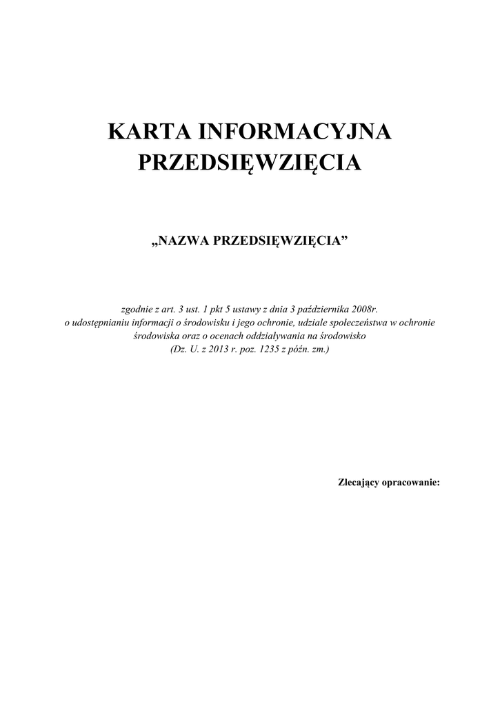 wzór karty informacyjnej przedsięwzięcia