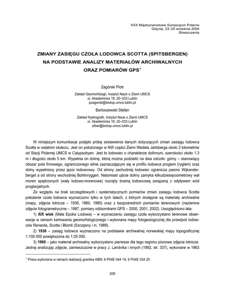 zmiany zasięgu czoła lodowca scotta (spitsbergen) na