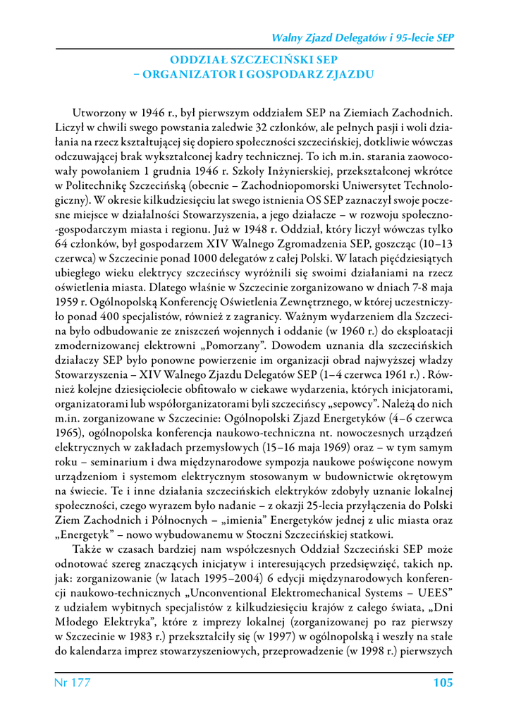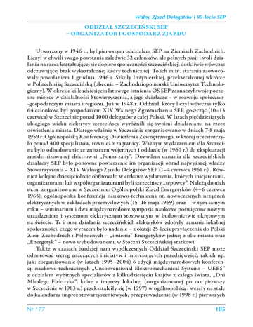 Nr 177 105 oDDział SzczecińSki Sep – orGanizator i GoSpoDarz