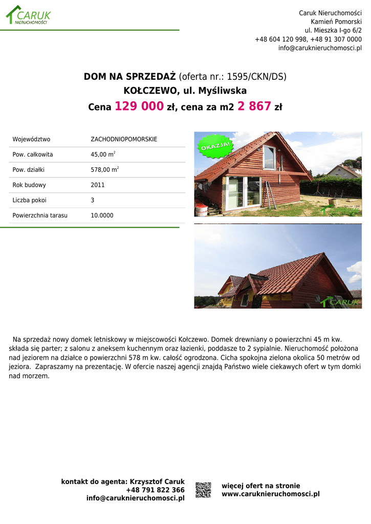DOM NA SPRZEDAŻ (oferta nr.: 1595/CKN/DS) KOŁCZEWO, ul
