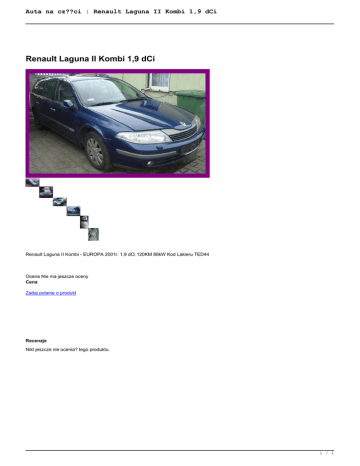 Auta na cz??ci : Renault Laguna II Kombi 1,9 dCi Renault Laguna II Kombi 1,9 dCi Renault Laguna II Kombi - EUROPA 2001r. 1,9 dCi 120KM 88kW Kod Lakieru TED44 Ocena Nie ma jeszcze oceny Cena Zadaj pytanie o produkt Recenzje Nikt jeszcze nie ocenia? tego produktu. 1 / 1 Powered by TCPDF (www.tcpdf.org)