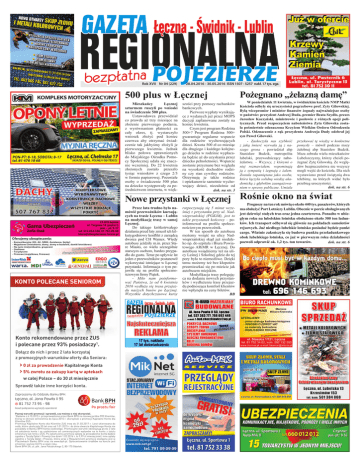 Rok XVII Nr 04 (229) 28.04.2016 - 30.05.2016 ISSN 1507 - 5257 nakł. 17 tys. egz. 500 plus w Łęcznej Pożegnano „żelazną damę” Mieszkańcy Łęcznej szturmem ruszyli po wnioski na świadczenie 500 plus. Ustawodawca przewidział co prawda aż trzy miesiące na złożenie pierwszego podania, z wyrównaniem płatności za cały okres, tj. wystarczyło wniosek złożyć pod koniec czerwca aby otrzymać świadczenie tak jakbyśmy złożyli je pierwszego kwietnia. Jednak blisko połowa uprawnionych do Miejskiego Ośrodka Pomocy Społecznej udała się znacznie wcześniej. Do 22 kwietnia złożonych zostało przeszło tysiąc wniosków z czego 2/3 w formie papierowej. Pozostałe osoby o świadczenie 500 plus na dziecko występowały za pośrednictwem internetu, w więk- szości przy pomocy rachunków bankowych. Pierwsze wypłaty wynikające z wydanych już przez MOPS decyzji zaplanowane zostały na koniec kwietnia. Czym jest program Rodzina 500+? Program Rodzina 500+ gwarantuje regularne wsparcie dla rodziców wychowujących dzieci. Kwota 500 zł co miesiąc dla drugiego i każdego kolejnego dziecka w rodzinie wypłacana będzie aż do uzyskania przez dziecko pełnoletności. Wsparcie zostanie przyznane bez względu na wysokość dochodów rodziny czy stan cywilny rodziców. Otrzymają je także rodzice i opiekunowie samotnie wychowujący dzieci, niezależnie od dok. na str. 3 W poniedziałek 11 kwietnia, w świdnickim kościele NMP Matki Kościoła odbyły się uroczystości pogrzebowe prof. Zyty Gilowskiej. Byłą wicepremier i minister finansów żegnały najważniejsze osoby w państwie: prezydent Andrzej Duda, premier Beata Szydło, prezes Jarosław Kaczyński, ministrowie i posłowie z różnych opcji politycznych. Przed rozpoczęciem nabożeństwa Zyta Gilowska została pośmiertnie odznaczona Krzyżem Wielkim Orderu Odrodzenia Polski. Odznaczenie z rąk prezydenta Andrzeja Dudy odebrał jej syn Paweł Gilowski. - Zaskoczyła nas szybkość przekuwać tę wiedzę w konkretne z jaką śmierć wyrwała ją z na- pomysły – mówił podczas mszy szego grona - powiedział abp żałobnej abp Stanisław Budzik. Stanisław Budzik, metropolita Msza zebrała wielu mieszkańców lubelski, przewodniczący nabo- Lubelszczyzny, którzy chcieli pożeństwu. – Wszyscy, z którymi o żegnać Zytę Gilowską. Ze wzglęniej rozmawiałem, wspominają dów bezpieczeństwa nie wszyscy ją z sympatią i żegnają z żalem. mogli wejść do kościoła. Dla nich Została zapamiętana jako osoba, wystawiono przed świątynią dwa która łączyła solidną wiedzę aka- telebimy, na których widać było demicką z głębokim zaangażowa- przebieg uroczystości. dok. na str. 6 niem w sprawy publiczne. Umiała Przez lata trudno było namówić przewoźników kursujących na trasie Łęczna – Lublin na modyfikację trasy w samej Łęcznej. Do takiego krótkotrwałego działania przed laty zmusił ich kilkutygodniowy konflikt z zarządcą dworca pod CH Wamex. Wtedy autobusy jeździły m.in. przez Stare Miasto, co wielu szczególnie starszym osobom, bardzo przypadło do gustu. Teraz po upływie lat jeden z przewoźników postanowił wykorzystać istniejące w Łęcznej przystanki. Informacja o tym pojawiła się na profilu społecznościowym firmy Piątek. - Miło nam poinformować Państwa, że od 6 kwietnia 2016 wydłuża się trasa przejazdu naszych busów po Łęcznej. Wszystkie dotychczasowe kursy rozpoczynają się 5 minut wcześniej z przystanku przy ul. Nadwieprzańskiej (PGKiM), jest to także przystanek końcowy – poinformował na profilu społecznościowym przewoźnik. W ten sposób do autobusu możemy wsiąść na ulicy Nadwieprzańskiej skąd już niedaleko np. do szpitala i Biura Powiatowego ARiMR w Łęcznej. Do autobusu wsiądziemy też na ulicy Leśnej i Szkolnej gdzie do tej pory było to niemożliwe. Dzięki temu możemy też bez kłopotów przemieszkać się po mieście jak autobusem miejskim. Modyfikacja trasy polegająca na dodaniu nowych przystanków i wydłużeniu trasy przejazdu podnosząca komfort klientów nie wpłynęła na ceny biletów. BB ma obsłużyć Port Lotniczy Lublin. Obecnie w porcie obsługiwanych jest dziewięć stałych tras oraz jedna czarterowa. Ponadto w ubiegłym roku na lubelskim lotnisku obsłużono około 300 ton ładunków. Ich transport odbywał się głównie na pokładach samolotów rejsowych. Już niedługo lubelskie lotnisko posiadać będzie punkt cargo. Właśnie zakończyła się budowa punktu przeładunkowego obok lubelskiego lotniska, co już w pierwszym roku działalności pozwoli odprawić ok. 1,2 tys. ton towarów. dok. na str. 6 okno na świat Nowe przystanki w Łęcznej Rośnie Prognozy na ten rok mówią o około 440 tys. pasażerów, których KONTO POLECANE SENIOROM Konto rekomendowane przez ZUS i polecane przez 93% posiadaczy1. Dołącz do nich i przez 2 lata korzystaj z promocyjnych warunków oferty dla Seniora: › 0 zł za prowadzenie Kapitalnego Konta › 5% zwrotu za zakupy kartą w aptekach w całej Polsce – do 30 zł miesięcznie Sprawdź także inne korzyści konta. =DSUDV]DP\GR2GG]LDáX%DQNX%3+ àĒF]QDDO-DQD3DZáD,, NRV]WSRáĂF]HQLDZJWDU\I\RSHUDWRUD Poznaj warunki promocji i sprawdź, czy możesz z niej skorzystać. 1 Badanie z 6.10.2015 r. przeprowadzone przez Bank BPH na losowej próbie 903 Klientów, którzy w okresie od kwietnia do lipca 2015 r. skorzystali z promocji Kapitalne Konto dla Klientów ZUS. Promocja Kapitalne Konto dla Klientów ZUS trwa do 31.03.2017 r. i jest skierowana do osób, które ukończyły 55 lat oraz od 1.01.2015 r. do dnia otwarcia Kapitalnego Konta nie posiadały w Banku BPH konta osobistego. Promocyjne warunki obowiązują przez 2 lata od założenia konta i są uzależnione od comiesięcznych wpływów na to konto z tytułu emerytury lub renty z ZUS. Po zakończeniu promocji opłata za prowadzenie konta będzie zgodna z Taryfą Opłat i Prowizji (na dzień 1.02.2016 r. to 9,99 zł miesięcz