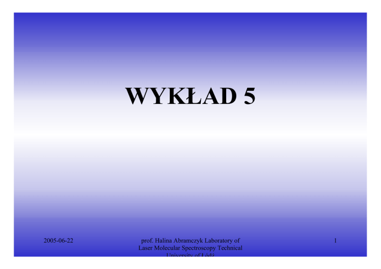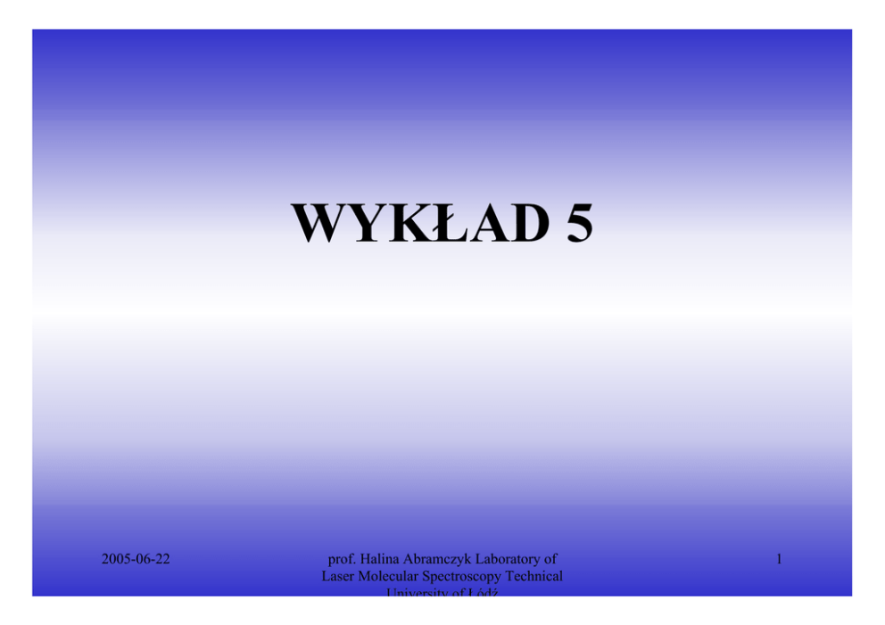 WYKŁAD 5 2005-06-22 prof. Halina Abramczyk Laboratory of Laser Molecular Spectroscopy Technical University of Łódź 1 METODY GENEROWANIA KRÓTKICH IMPULSÓW 1. Q – switching (przełączanie dobroci) 2. mode locking (synchronizacja modów) T t t N 2L = c T = N 2L = cN 4 Lδλ = 2 2005-06-22 λ0 ciąg regularnych impulsów oddalonych od siebie czasowo czas trwania pojedynczego impulsu gdzie N – liczba modów prof. Halina Abramczyk Laboratory of Laser Molecular Spectroscopy Technical University of Łódź 2 I(t) 2L T= c 2L ∝ 2L t= cN c∆ 1 2005-06-22 prof. Halina Abramczyk Laboratory of Laser Molecular Spectroscopy Technical University of Łódź 2 3 ∆ϕ = f (t ) 2005-06-22 ∆ϕ = const prof. Halina Abramczyk Laboratory of Laser Molecular Spectroscopy Technical University of Łódź 4 Załóżmy, że generowane mody są falami płaskimi iωt E ( t ) = E0e N = 2n + 1 Wypadkowe pole elektryczne N modów jest określone sumą: n E(t ) = ∑ E 0 exp i[(ω0 + k ∆ωq )t + k ∆ϕq ] k = −n a. gdy ∆ϕq = ∆ϕq ( t ) otrzymujemy chaotyczną mieszaninę modów 2005-06-22 prof. Halina Abramczyk Laboratory of Laser Molecular Spectroscopy Technical University of Łódź 5 b. gdy ∆ϕq = const można pokazać, że wypadkowe pole elektryczne wynosi N (∆ωqt + ∆ϕq ) sin 2 E(t ) = E0 exp(iω0t ) ∆ωqt + ∆ϕq sin 2 2005-06-22 prof. Halina Abramczyk Laboratory of Laser Molecular Spectroscopy Technical University of Łódź 6 2L T= c 2L t = Nc 2005-06-22 prof. Halina Abramczyk Laboratory of Laser Molecular Spectroscopy Technical University of Łódź t 7 E(t) 2L T= c 2L t = Nc 2005-06-22 prof. Halina Abramczyk Laboratory of Laser Molecular Spectroscopy Technical University of Łódź t 8 Obliczamy okres repetycji impulsów ′ ∂E sin (N α 2 ) cos (N α 2 ) N 2 + =0⇒ = sin (α 2 ) ∂t sin (α 2 ) sin (N α 2 ) ⋅ cos (α 2 ) 1 − ⋅ =0 2 sin (α 2 ) 2 2005-06-22 prof. Halina Abramczyk Laboratory of Laser Molecular Spectroscopy Technical University of Łódź 9 N Nα 1 sin ( Nα 2 ) ⇒ cos = ⋅ cos(α 2 ) ⇒ 2 2 2 sin (α 2 ) α 2005-06-22 T = t 2 − t1 = 2π = = ∆ω q 2π = = 2π (c 2 L ) 2L = c Nα α Ntg = tg ⇒ tg = 0 2 2 2 α1 = (∆ωq t1 + ∆ϕ q ) 2 = 0 α 2 = (∆ωq t 2 + ∆ϕ q ) 2 = π prof. Halina Abramczyk Laboratory of Laser Molecular Spectroscopy Technical University of Łódź 10 Długość trwania pojedynczego impulsu sin N (∆ωq t + ∆ϕq ) 2 = 0 ⇒ N (∆ωq t1 + ∆ϕq ) 2 = 0 ⇒ t 2 − t1 = N (∆ωq t 2 + ∆ϕq ) 2 = π 2π 2L = N ∆ωq Nc 2005-06-22 prof. Halina Abramczyk Laboratory of Laser Molecular Spectroscopy Technical University of Łódź 11 Metody synchronizacji modów a. Aktywne – wymuszone z zewnątrz przetwornik piezoelektryczny, przetwornik optoakustyczny, nadajnik fal dźwiękowych Drganie lustra z częstością międzymodową c ∆ωq = ⋅ 2π 2L b. Pasywne – autosynchronizacja nasycające się absorbenty Modulowanie współczynnika wzmocnienia ośrodka 2005-06-22 prof. Halina Abramczyk Laboratory of 12 aktywnego Laser Molecular Spectroscopy Technical University of Łódź 2005-06-22 prof. Halina Abramczyk Laboratory of Laser Molecular Spectroscopy Technical University of Łódź 13 2005-06-22 prof. Halina Abramczyk Laboratory of Laser Molecular Spectroscopy Technical University of Łódź 14 2005-06-22 prof. Halina Abramczyk Laboratory of Laser Molecular Spectroscopy Technical University of Łódź 15 2005-06-22 prof. Halina Abramczyk Laboratory of Laser Molecular Spectroscopy Technical University of Łódź 16 2005-06-22 prof. Halina Abramczyk Laboratory of Laser Molecular Spectroscopy Technical University of Łódź 17 Szerokość linii emisji spontanicznej i szerokość linii wymuszonej wiąże się z dwoma ważnymi zjawiskami 1. Przestrajalnością (tunability) 2. Generowaniem krótkich impulsów (generation ultrashort pulses) 2005-06-22 prof. Halina Abramczyk Laboratory of Laser Molecular Spectroscopy Technical University of Łódź 18 2005-06-22 prof. Halina Abramczyk Laboratory of Laser Molecular Spectroscopy Technical University of Łódź 19 2005-06-22 prof. Halina Abramczyk Laboratory of Laser Molecular Spectroscopy Technical University of Łódź 20
