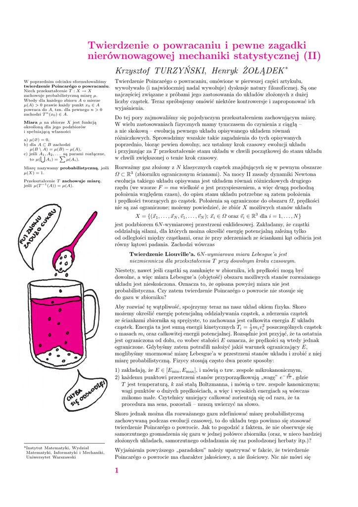 Twierdzenie Poincarégo o powracaniu, omówione w pierwszej części artykułu,