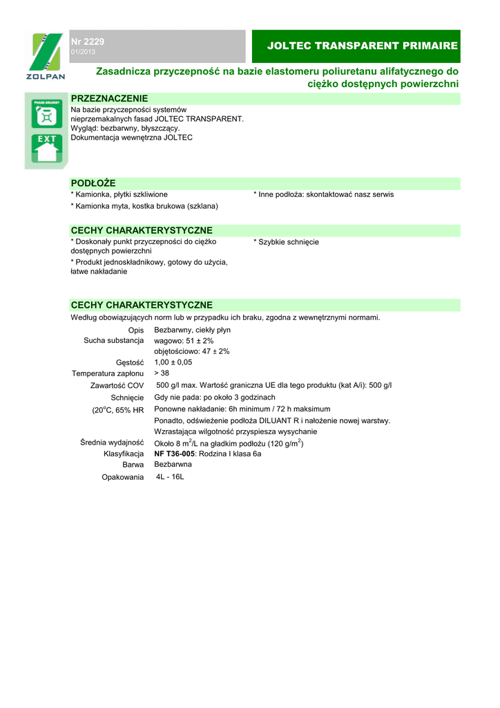 JOLTEC TRANSPARENT PRIMAIRE Zasadnicza przyczepność na