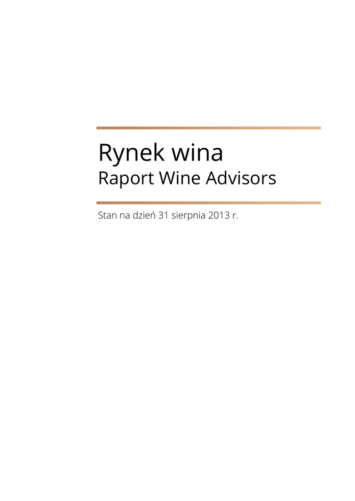 Rynek wina Raport Wine Advisors Stan na dzień 31 sierpnia 2013 r. 2 Streszczenie Miesiące wakacyjne (w szczególności sierpień) nie przyniosły zmian na rynku wina. Indeksy pozostawały w trendzie bocznym, przy niskim poziomie obrotów. W początkach sierpnia pozytywnie zakończyły się negocjacje władz Chin z przedstawicielami Unii Europejskiej – potencjalna „wojna celna” została zażegnana. Strony wyjaśniły sobie wzajemne zawiłości polityki cenowej na chińskie panele solarne oraz zasady clenie unijnych (głownie francuskich) win. Tak jak pisaliśmy temat był głownie medialny – na rynku wina nie dało się zaobserwować żadnych ruchów, powiązanych z wiadomościami na temat ewentualnego konfliktu. Indeksy rynkowe (stan na 31 sierpnia 2013) MOM (miesiąc) YTD (od początku roku) 1yr (ostatnie 12 miesięcy) 5yr (ostatnie 60 miesięcy) Liv-ex Fine Wine 50 0,0% 4,0% 5,6% 17,5% Liv-ex Fine Wine Investables 0,1% 4,7% 6,5% 16,6% FTSE 100 -2,4% 8,7% 12,3% 13,8% S&P 500 -3,1% 14,5% 16,1% 27,3% Złoto 4,4% -12,3% -15,1% 98,2% Index Źródło: www.liv-ex.com, stan na 31 sierpnia 2013 r. Po jednoznacznie wzrostowym okresie od listopada 2012 do marca 2013 wąski indeks rynku (Liv-ex Fine Wine 50, opierający się wyłącznie na winach First Growths: Lafite, Latour, Mouton, Margaux i Haut Brion) wykazuje minimalne wahania i znajduje się w trendzie bocznym. Wine Advisors Portfele Otwarte Sp. z o.o. ul. Próżna 9, 00-107 Warszawa www.wineadvisors.pl 3 330,00 320,00 310,00 300,00 290,00 Liv-ex Fine Wine 50, ostatnie 12 miesięcy 280,00 270,00 Liv-ex Fine Wine 50 – ostatnie 12 miesięcy (11 września 2012 do 20 września 2013) Poniżej prezentujący dłuższą perspektywę czasową wykres szerokiego indeksu Liv-ex Investables (ponad 200 pozycji, 24 czołowych producentów) za ostatnie 8 lat. Tradycyjnie, już od wielu miesięcy prognozujemy powrót indeksów do długoterminowego trendu – czyli kontynuację wzrostów w kolejnych miesiącach. Przy zauważalnym w początku września ożywieniu – liczba jednocześnie złożonych na Liv-exie ofert osiągnęła historyczne maksimum – i znakomitych wynikach bieżących aukcji, prognozujemy poziom indeksów na koniec roku o 4-6% powyżej dzisiejszego poziomu. 400,00 350,00 300,00 250,00 200,00 150,00 100,00 Liv-ex Investables, ostatnie 8 lat 50,00 lip-13 lut-13 wrz-12 kwi-12 lis-11 cze-11 sty-11 sie-10 mar-10 paź-09 maj-09 gru-08 lip-08 lut-08 wrz-07 kwi-07 lis-06 cze-06 sty-06 sie-05 0,00 Liv-ex Investables – ostatnie 8 lat (sierpień 2005 – sierpień 2013) Wine Advisors Portfele Otwarte Sp. z o.o. ul. Próżna 9, 00-107 Warszawa www.wineadvisors.pl 4 Nowy produkt inwestycyjny - Kolekcje Wine Advisors. Z prawdziwą przyjemnością informujemy wszystkich Państwa, że Wine Advisors rozszerzyło swoją ofertę inwestycyjną o nowy, unikatowy w skali globalnej produkt: Kolekcje Wine Advisors. Cechy produktu: • Limitowane serie: w każdej emisji oferowana jest ściśle określona, niewielka liczba zestawów. W ramach letniej Kolekcji 2013 (już sprzedanej) oraz Kolekcji 2013 zimowej (która będzie Państwu przedstawiona w październiku 2013) proponowanych jest jedynie 12 zestawów. • Najlepsze możliwe provenance wina – wina wchodzące w skład Kolekcji przechowywane są nadal w piwnicach producenta, nigdy nie były transportowane i gdziekolwiek magazynowane. Tym samym, w wybranym przez nabywcę momencie zamknięcia inwestycji będzie można skorzystać z dodatkowej premii „za pochodzenie”. Na podstawie danych z odbywających się aukcji można tą premię szacować na 25-35% wartości rynkowej wina. • Dodatkowa wartość kolekcjonerska: każdy zestaw jest numerowany i wyposażony w indywidualny certyfikat, sygnowany przez właściciela winnicy. • Zakładany horyzont inwestycyjny: 10 lat i więcej. W ramach kontraktu winnica producenta zobowiązana jest za darmo przechowywać wina wchodzące w skład Kolekcji przez 10 lat. Na życzenie nabywcy okres ten będzie mógł być przedłużony. • Atrakcyjna struktura kosztów: w cenie kolekcji zawarte są koszty zakupu wina i ich przechowywanie przez okres 10 lat w piwnicach producenta oraz 10% prowizja Wine Advisors. Poza wskazanymi wyżej opłatami inwestor nie ponosi żadnych innych kosztów. Wine Advisors Portfele Otwarte Sp. z o.o. ul. Próżna 9, 00-107 Warszawa www.wineadvisors.pl 5 Szacujemy, że inwestując w kolekcje Wine Advisors i korzystając z dodatkowych źródeł zysku (premia za provenance, wartość kolekcjonerska autografu i certyfikatu) osiągnąć będzie można stopy zwrotu przekraczające 15% w skali roku. Kolekcja Wine Advisors 2013 Summer oparta była o wina Chateau Haut Brion. Przygotowywana na październik Kolekcja Wine Advisors 2013 Winter opierać się będzie o najbardziej poszukiwane roczniki Chateau Musar. Zainteresowanych nabyciem Kolekcji – prosimy o bezpośredni kontakt. Prognoza na nadchodzące miesiące Początek września przyniósł widoczne ożywienie na rynku wina. Liczba jednocześnie złożonych na giełdzie Liv-ex ofert osiągnęła swoje historyczne maksimum. Także proporcja liczby ofert sprzedaży do ofert zakupu nastrajać może optymistycznie. Już za kilka tygodni dysponować będziemy precyzyjnymi informacjami o tegorocznych zbiorach. Jak na razie wiadomo, że rocznik 2013 pod względem jakości dołączy do przeciętnych roczników 2011 i 2012. Tym samym prymat lat 2009 i 2010 jako wybitnych – będzie absolutnie niezagrożony. Rocznik 2013 będzie także w przypadku wielu winnic, związany z wyjątkowo niskim wolumenem produkcji (choć z pewnością dotknie to przede wszystkim producentów niższej i średniej klasy). Wszystkie te czynniki można z perspektywy inwestorów obecnych już na rynku wina oceniać raczej pozytywnie – popyt konsumentów i kolekcjonerów zwracać się będzie bardziej ku starszym rocznikom, a to windować będzie ich ceny w górę. Prognozujemy wzrost indeksów rynku wina o kilka proc