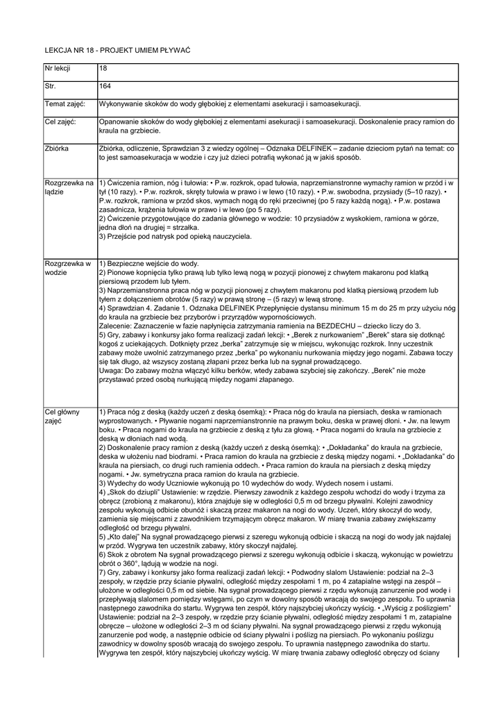 LEKCJA NR 18 - PROJEKT UMIEM PŁYWAĆ Nr lekcji 18 Str. 164