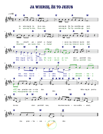 JA WIERZĘ, ŻE TO JEZUS = 82 E A 4 4 Ja Ja wie rzę, że to wie rzę To bie, E 5 H E Je e zus, Pa a nie, A On zmarł i po wstał Zmar łeś i po wsta łeś, 9 A H A wie rzę, że On Sy nem Bo ga wie rzę, że Tyś Sy nem Bo ga E a a by żyć by żyć A H i za ce nę śmie rci ży cie i za ce nę śmie rci ży cie E jest. jest. H E H dał. dać. H E 3 Wie rzę, że Wie rzę, że 13 jest tu tu taj A H E A nas te nas te raz raz H u u E moc, ma prze ba cze moc, masz prze ba cze E e nia e nia ma prze ba zdro wie zdro wie nia nia a a A H 3 dar. Wie rzę, że jest tu po śród A H nas, ma moc nas te H H nas, nas. dar. A E 3. dar. E sto i wiać u wiać u H te raz zdra zdra sto i po śród sto isz po śród E A H E A 25 je est. tu u. 2. 1. 20 ra az ste eś ma moc Masz moc 15 te raz. On tu te je steś. Ty y je cze e nia C E dar. raz u zdra E wiać,