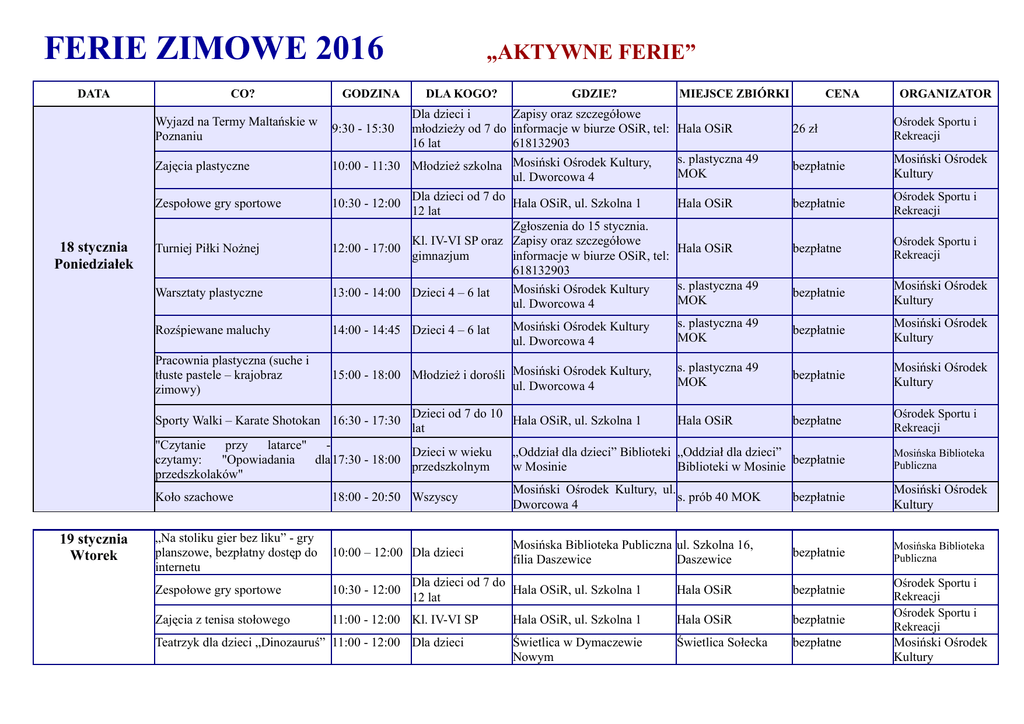 ferie zimowe 2016 - Mosiński Ośrodek Kultury