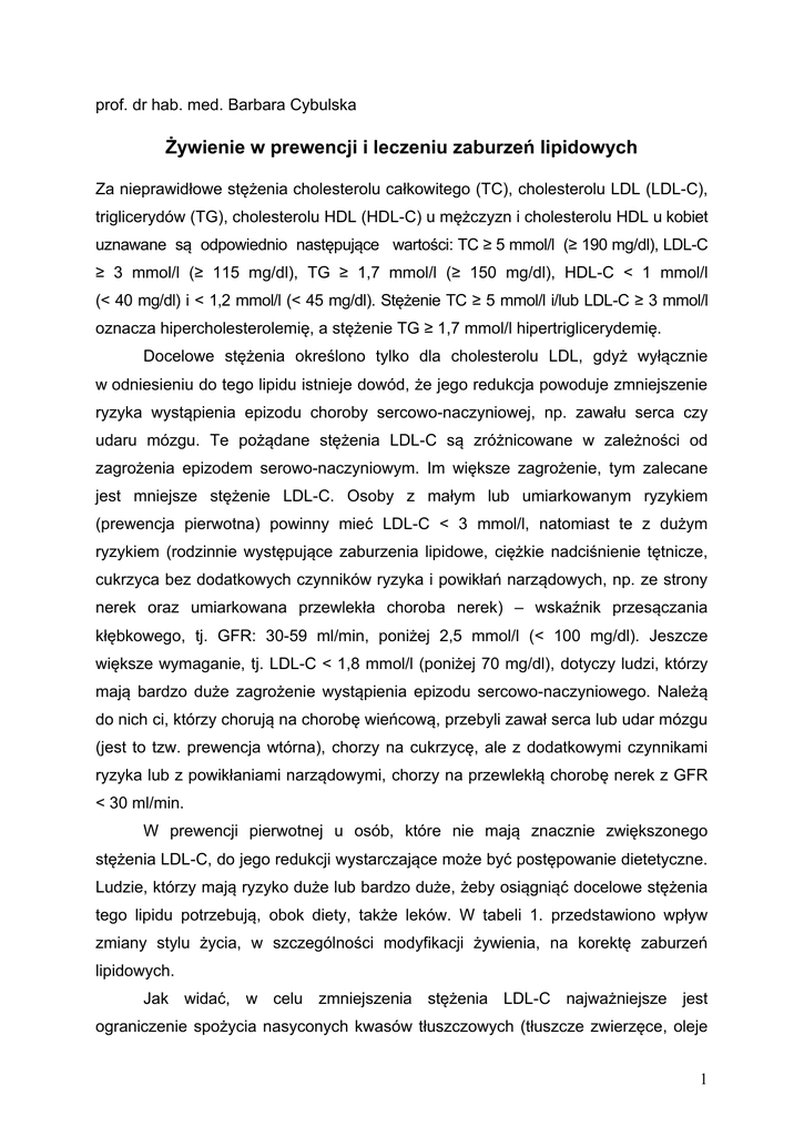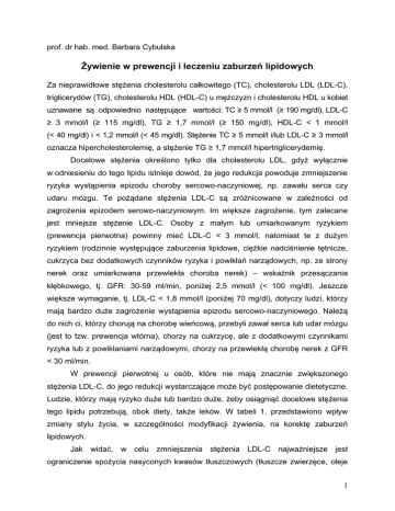 Żywienie w prewencji i leczeniu zaburzeń lipidowych prof. dr hab