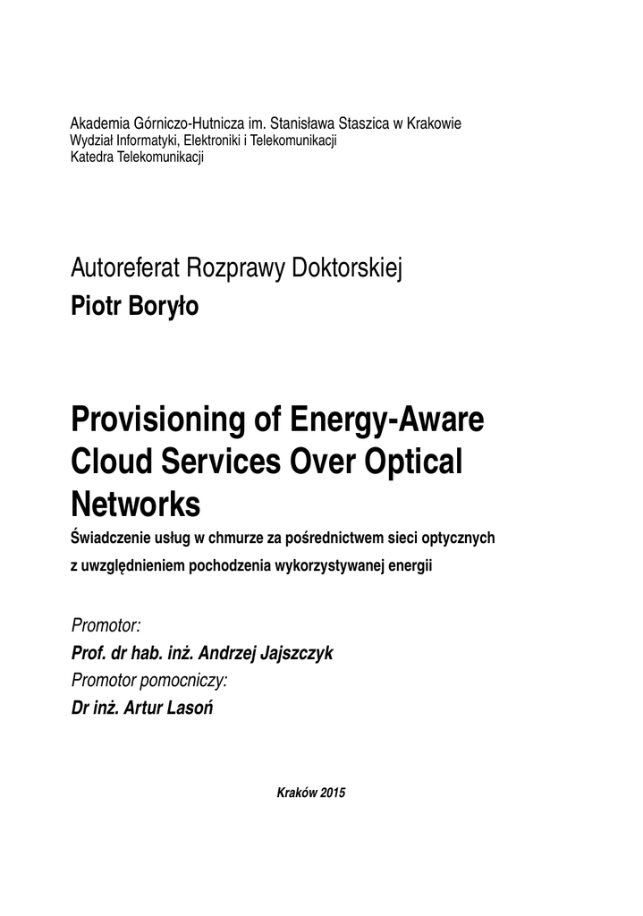 Piotr Boryło Provisioning of Energy