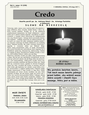 Rok 6, numer 10 (228) - V Niedziela zwykła, 05 stycznia 2017