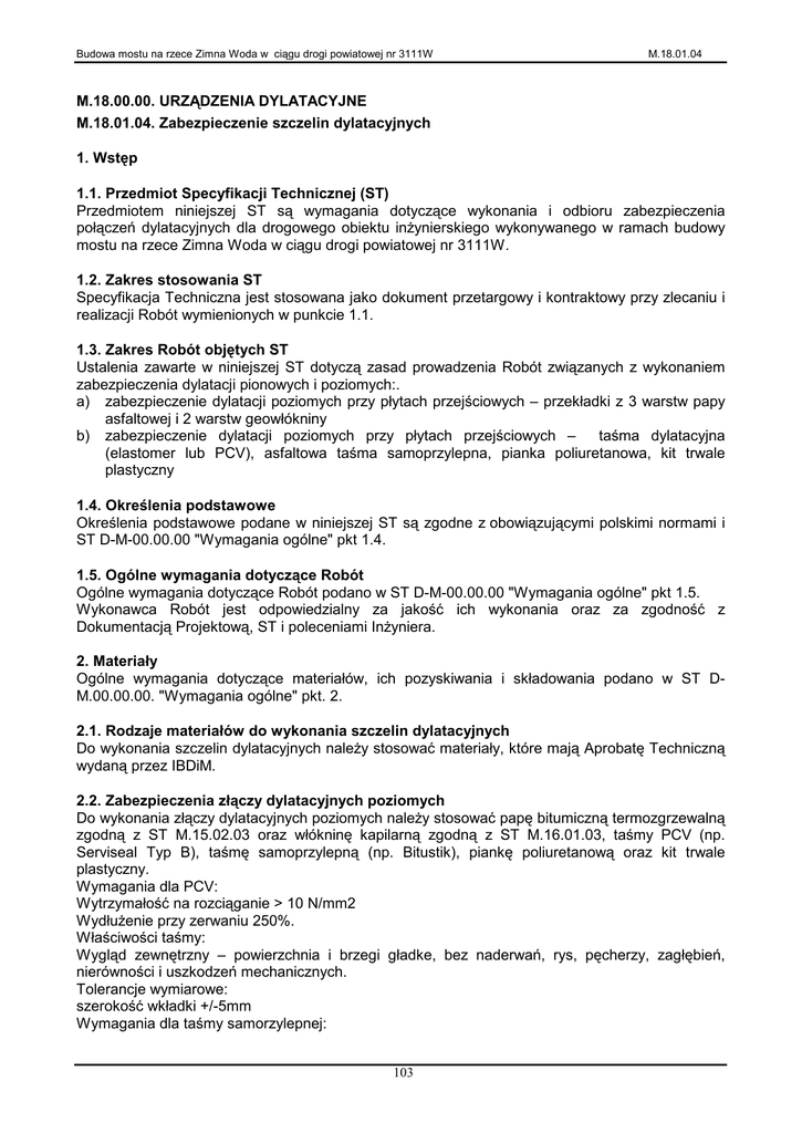M.18.00.00. URZĄDZENIA DYLATACYJNE M.18.01.04