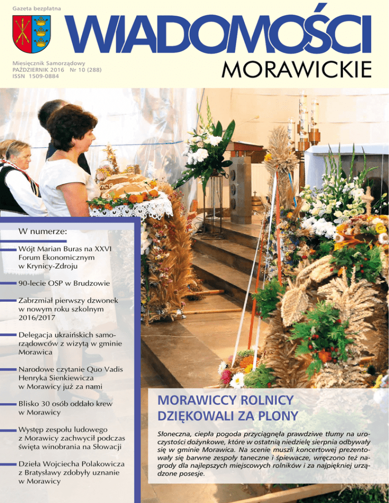 Gazeta bezpłatna Miesięcznik Samorządowy PAŹDZIERNIK 2016 Nr 10 (288) ISSN 1509-0884 W numerze: Wójt Marian Buras na XXVI Forum Ekonomicznym w Krynicy-Zdroju 90-lecie OSP w Brudzowie Zabrzmiał pierwszy dzwonek w nowym roku szkolnym 2016/2017 Delegacja ukraińskich samorządowców z wizytą w gminie Morawica Narodowe czytanie Quo Vadis Henryka Sienkiewicza w Morawicy już za nami Blisko 30 osób oddało krew w Morawicy Występ zespołu ludowego z Morawicy zachwycił podczas święta winobrania na Słowacji Dzieła Wojciecha Polakowicza z Bratysławy zdobyły uznanie w Morawicy MORAWICCY ROLNICY DZIĘKOWALI ZA PLONY Słoneczna, ciepła pogoda przyciągnęła prawdziwe tłumy na uroczystości dożynkowe, które w ostatnią niedzielę sierpnia odbywały się w gminie Morawica. Na scenie muszli koncertowej prezentowały się barwne zespoły taneczne i śpiewacze, wręczono też nagrody dla najlepszych miejscowych rolników i za najpiękniej urządzone posesje. Informujemy, że z dniem 1 marca 2015 r. uległy zmianie godziny pracy Urzędu Gminy w Morawicy: poniedziałek: wtorek - piątek: 9.00 - 17.00 7.30 - 15.30 godziny pracy Urzędu Stanu Cywilnego pozostają bez zmian tj.: poniedziałek: wtorek - piątek: 7.00 - 17.00 7.30 - 15.30 Bezpośrednio na komórkę do morawickiej Straży Gminnej 605 978 337 to numer do morawickiej Straży Gminnej. Funkcjonariusze są dostępni w godzinach służbowych. Zakład Gospodarki Komunalnej w Morawicy Spółka z o.o. informuje, że od dnia 02 marca 2015 roku zmieniły się godziny pracy zakładu: poniedziałek: 7.30 - 17.30 wtorek - piątek: 7.30 - 15.30 Ośrodek Tradycji Garncarstwa w Chałupkach zaprasza Wiadomości Morawickie Miesięcznik Samorządowy Wydawca: Urząd Gminy w Morawicy Adres redakcji: 26-026 Morawica, ul. Spacerowa 7 tel./fax: 41 311 46 90 e-mail:gmina@morawica,pl www.morawica.pl Redaktor naczelny: Agnieszka Olech-Mońska Współpracownicy: Paweł Marcjan, Teresa Badowska, Jacek Kubicki, Krzysztof Kubicki, Małgorzata Bielawska, Monika Malicka, Marcin Dziewięcki, Marianna Parlicka-Słowik, Edyta Włodarska, Przemysław Strójwąs Fotografie: Bartosz Kruk, Andrzej Radomski Skład i druk: Digital Art Studio Gała Przemysław www.digitalartstudio.pl Redakcja nie odpowiada za treści reklam i ogłoszeń ISSN 1509-0884 Od wtorku do niedzieli w godz. 10-16. Ekspozycja stała: wystawa wyrobów garncarskich garncarzy z Chałupek i zaprzyjaźnionych miejscowości, miejsce pracy garncarza. Bilety: 4 zł - osoba dorosła 2 zł - uczniowie i studenci Rezerwacji wycieczek można dokonać telefonicznie 41 311 87 02 (u przewodnika ośrodka) Zgłoszenie awarii wodociągów i kanalizacji Zakład Gospodarki Komunalnej tel. 311-47-95 dzwonić można w godz. 730 - 1530 Oczyszczalnia Ścieków w Brzezinach tel. 311-49-28 czynna całą dobę Wójt Marian Buras na „XXVI Forum Ekonomicznym” w Krynicy-Zdroju Ponad 200 sesji plenarnych, prezentacji, wydarzeń specjalnych i kulturalnych, a także paneli dyskusyjnych, w których przez trzy dni wzięła udział rekordowa ilość 3,5 tysiąca uczestników i akredytowanych dziennikarzy. Każdego roku w Krynicy podczas Forum spotykają się czołowi politycy, przedstawiciele biznesu, a także wpływowi ekonomiści i intelektualiści oraz liderzy samorządowi. Wśród uczestników Forum znalazł się również wójt gminy Morawica, Marian Buras. Tegoroczne Forum w Krynicy odbyło się pod hasłem „Europa w obliczu wyzwań – zjednoczeni czy podzieleni?”. Forum Ekonomiczne w Krynicy jest jednym z najważniejszych wydarzeń ekonomiczno-gospodarczych w Europie Środkowo-Wschodniej. To tu od ponad 20 lat spotykają się premierzy, przedstawiciele rządów państw europejskich, unijni decydenci, prezesi firm, eksperci i ekonomiści. W tym roku w Krynicy gościli między innymi premier Beata Szydło, minister rozwoju Mateusz Morawiecki, premier Ukrainy Wołodymyr Hrojsman, premier Węgier Viktor Orban, premier Czech, Bohuslav Sobotka i wielu innych. Forum rozpoczęło się 6 września, a zakończyło się 8 września. Warto podkreślić, że ze względu na liczne delegacje zagraniczne i wiele różnorodnych imprez towarzyszących, krynickie Forum porównywane jest do Światowego Forum Ekonomicznego w szwajcarskim Davos. W tegorocznym Forum ekonomicznym w Krynicy wzięła udział liczna delegacja włodarzy z gmin powiatu kieleckiego, a w śród nich: wójt gminy Morawica Marian Buras, burmistrz Chęcin Robert Jaworski, wójt Bielin Sławomir Kopacz, wójt Mniowa Mariusz Adamczyk wraz z wicewójtem Maciejem Lubeckim, wójt Miedzianej Góry - Zdzisław Wrzałka, wójt Zagnańska Szczepan Skorupski i włodarz Piekoszowa Zbigniew Piątek. Wszyscy uczestniczyli w Forum pod szyldem Związku Gmin Powiatu Kieleckiego. Na Forum nie zabrakło także marszałka Adama Jarubasa, wicemarszałka Jana Maćkowiaka oraz starosty Powiatu Kieleckiego Michała Godowskiego. Jak podkreślił wójt Marian Buras, udział w Forum Ekonomicznym to bardzo ciekawe, a zarazem pouczające doświadczenie. - Ponad 3 tysiące uczestników z 50 krajów - te liczby obrazują, jak ważne jest wydarzenie, w którym uczestniczyliśmy. Forum zdominowały oczywiście tematy gospodarcze, ale dużo mówiło się też o współpracy politycznej między państwami - mówi wójt gminy Morawica, Marian Buras, chwaląc jednocześnie możliwość spotkania przedstawicieli różnych krajów i zapoznania się z ich doświadczeniami. - Szczególnie ciekawa była dyskusja z udziałem prezesa Najwyższej Izby Kontroli na temat stosowania klauzuli społecznej w Prawie Zamówień Publicznych czy panel na temat równomiernego rozwoju miast i wsi. Ja, wybierając bloki dyskusyjne, koncentrowałem się na sprawach związanych z samorządnością, gospodarką, sposobami przyciągania inwestorów - wymienia wójt Buras. Forum Ekonomiczne to doskonała okazja do tego, by spotkać się w szerokim gronie, omówić bieżące kwestie, wymienić uwagi - mówi wójt Zagnańska Sz