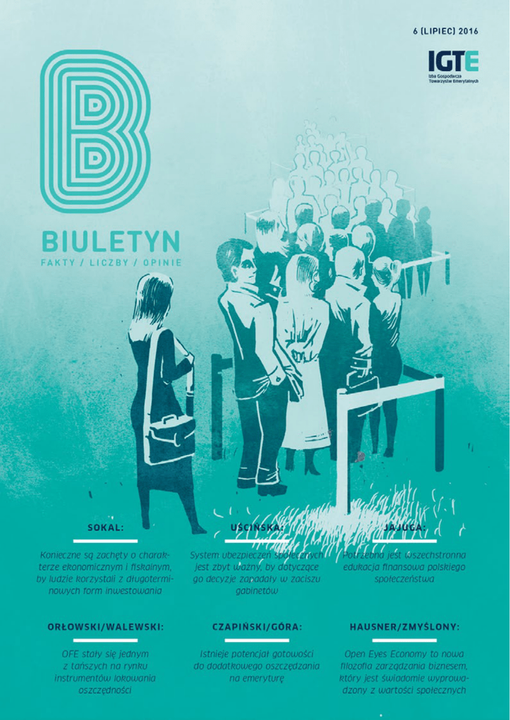 SPIS TREŚCI 4 7 Małgorzata Rusewicz Dementi rządu Zdzisław Sokal Dyskusja powinna być gorąca 10 13 prof. Gertruda Uścińska Odpowiedzialność za przyszłość Andrzej Narkiewicz Co brać pod uwagę zmieniając polski system emerytalny 17 21 prof. Krzysztof Jajuga Emerytury kapitałowe w polskim systemie emerytalnym prof. Witold Orłowski, Mateusz Walewski Miejsce Otwartych Funduszy Emerytalnych w Planie na rzecz Odpowiedzialnego Rozwoju 26 30 dr Janusz Kornecki Dobre praktyki promowania systemów dodatkowego zabezpieczenia emerytalnego prof. Janusz Czapiński, prof. Marek Góra Świadomość „emerytalna” Polaków 37 40 Filip Pietkiewicz-Bednarek Między II a III filarem prof. Jerzy Hausner, Mateusz Zmyślony Open Eyes Economy W 4 O D WYDAWCY Dementi rządu Małgorzata Rusewicz Biuletyn 6 (lipiec) 2016 5 Wywołany przez pojedynczy artykuł dla siebie rozwiązanie w zakresie bu- medialny szum na temat połączenia OFE dowania zabezpieczenia emerytalnego. w jeden państwowy fundusz wywołał Liczba ta może znacząco wzrosnąć, jeśli niepokój członków funduszy, ekono- weźmie się pod uwagę dynamikę składa- mistów, inwestorów i przedstawicieli nych w obecnym okienku transferowym rynku kapitałowego. Istnieniu takich oświadczeń oraz dane historyczne analo- planów oficjalnie zaprzeczył wicemini- gicznego procesu z 2014 roku. ster rodziny, pracy i polityki społecznej, Aktywa członków OFE wynoszą około prof. dr hab. Marcin Zieleniecki, którego 140 mld zł i zostały zainwestowane resort odpowiada za przygotowanie w blisko 300 spółek (poprzez akcje tegorocznego przeglądu systemu eme- i obligacje) – udział OFE w kapitalizacji rytalnego. giełdy ogółem wynosi ponad 20%, zaś Stanowisko wiceministra jest zbieżne w kapitalizacji free-float blisko 44%. z informacjami przekazywanymi przez Połączenie funduszy byłoby tragicznym reprezentantów Ministerstwa Rodziny, w skutkach ciosem nie tylko dla polskie- Pracy i Polityki Społecznej przedstawi- go rynku kapitałowego, giełdy i gospo- cielom Izby Gospodarczej Towarzystw darki, ale przede wszystkim dla milio- Emerytalnych – w dotychczasowych nów Polek i Polaków, którzy całkowicie kontaktach strona rządowa nie rozwa- straciliby zaufanie do systemu emery- żała, ani nie anonsowała podobnego talnego i państwa, a ich interes zostałby rozwiązania. narażony na szwank. Reakcja rządu została uznana przez Obecne koszty zarządzania OFE nale- Połączenie funduszy byłoby tragicznym w skutkach ciosem nie tylko dla polskiego rynku kapitałowego, giełdy i gospodarki, ale przede wszystkim dla milionów Polek i Polaków IGTE za przejaw odpowiedzialności żą do najniższych na świecie. Z analizy i troskę o interesy przyszłych emerytów. przygotowanej przez Mercer Polska Konsolidacja OFE pod egidą państwa, wynika, że opłaty za zarządzanie OFE czyli kolejna zmiana w systemie emery- są ponad 50% niższe niż wynagrodze- blemów w perspektywie właścicielskiej talnym, który potrzebuje stabilizacji i od- nia pobierane z tytułu zarządzania w i prawnej. Przez wielkość posiadanych budowy zaufania, miałaby negatywne, globalnych firmach asset management w wielu spółkach udziałów OFE mają trudne do przeszacowania w skali skutki, dla porównywalnych typów portfeli. istotny wpływ na ich funkcjonowanie. nie tylko ekonomiczne – w tym dla ryn- OFE są również ponad dwu i półkrotnie Skupienie tych udziałów w rękach in- ku kapitałowego, ale również społeczne. tańsze od polskich funduszy akcyjnych stytucji rządowej oznaczałoby nie tylko i stabilnego wzrostu. W tej perspektywie znaczące zwiększenie sektora państwo- czonymi na zabezpieczenie emerytalne OFE zarządzają funduszami przezna- OFE są nawet tańsze o 30% od publicz- wego w gospodarce, ale również zmiany ponad 16 mln Polaków, którzy zgodnie nej instytucji wspólnego inwestowania w sposobie działania tychże spółek. z wynikami badania CBOS z 2015 roku w Wielkiej Brytanii (tzw. NEST). Dopuszczalność połączenia funduszy w blisko 60% uważają, że państwo nie Również w kwestii efektywności i oddanie ich w zarząd jednemu pod- może swobodnie dysponować zgroma- zarządzania aktywami przywołane przez miotowi rodzi też znaczące wątpliwości dzonymi w nich środkami. Po słusznie media rozwiązanie jest niekorzystne. natury prawnej z perspektywy przepi- krytykowanej przez rząd i mającej zna- Zastąpienie kilkunastu podmiotów, sów o pomocy publicznej. czące gospodarcze oraz polityczne kon- konkurujących na rynku w obszarze sekwencje operacji przeniesienia 51,5% stóp zwrotu i poziomu kosztów jednym sposób nie przyczyniłoby się rów- aktywów z OFE do ZUS w 2014 roku, państwowym funduszem emerytalnym nież do podniesienia bezpieczeństwa ponad 2,5 mln Polek i Polaków uznało nie może zapewnić lepszych wyników zgromadzonych w OFE środków. PTE od przekazywanie części składki emery- inwestycyjnych. blisko dwóch lat postulują poszerzenie talnej do prywatnych, podlegających rynkowej konkurencji OFE za najlepsze Od Wydawcy Koncepcja konsolidacji funduszy rodzi również widmo skomplikowanych pro- Omawiane rozwiązanie w żaden katalogu instrumentów inwestycyjnych, by poprzez zwiększenie możliwości 6 idące za tym pogrzebanie silnie już nad- Głęboko wierzymy, że wspomniana WIG na zamknięcie 1 czerwca wyniósł 44 700,67 pkt., co oznacza spadek o 4,27% w stosunku do dnia sprzed publikacji nt. połączenia funduszy werężonego zaufania Polaków do stabil- odpowiedzialność będzie cechowała ności systemu emerytalnego zniweczy- zarówno etap prac, jak również powstałe łyby szanse na wdrożenie z sukcesem wnioski i rekomendacje, że ewentualne ewentualnej reformy w III filarze, która propozycje zmian będą szanować wybór ma wspomóc rozwiązanie brzemien- i interesy osób ubezpieczonych, a do nego w skutki dla polskiej gospodarki konstruktywnych rozmów o kierun- problemu niedostatk