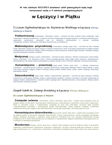 Oferta edukacyjna szkół ponadgimnazjalnych w powiecie łęczyckim