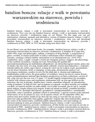 batalion boncza: relacje z walk w powstaniu warszawskim na starowce, powislu i srodmiesciu PDF book - read or download batalion boncza: relacje z walk w powstaniu warszawskim na starowce, powislu i srodmiesciu batalion boncza: relacje z walk w powstaniu warszawskim na starowce, powislu i srodmiesciu. Now you can see batalion boncza: relacje z walk w powstaniu warszawskim na starowce, powislu i srodmiesciu page on our library. On this page you can get information, citations, manuals and alternative version of batalion boncza: relacje z walk w powstaniu warszawskim na starowce, powislu i srodmiesciu. Also you can download batalion boncza: relacje z walk w powstaniu warszawskim na starowce, powislu i srodmiesciu in PDF, DOC or TXT formats using next direct link. In our library you can find mane books, for example : batalion boncza: relacje z walk w powstaniu warszawskim na starowce, powislu i srodmiesciu, li denghui di yi qian tian: 1988-1992, logic and philosophy, asthma, evaluation of drug therapy: a symposium of glaxo, sweden, la musica policorale in italia e nelleuropa centro-orientale fra cinque e seicento, creating a chinese harbin: nationalism in an international city, 1916-1932, condimenti, salse, e sughi: consigli e ricette per mangiare goloso e leggero, the physiology of the cerebral circulation, coming out even, bewertung der qualitat der personaleinsatzplanung im ambulanten pflegedienst: ein akteursbezogener ansatz, patsy ann of alaska: the true story of a dog, kindai nihon yubinshi: sosetsu kara kakuritsu e ; tsuketari, tokaido ishibe-eki yubin sogyo shiryo, zolang de wind van de wolken waait: geschiedenis van de friese literatuur, brud, ye jianqing: ye jian qing, okonomische analyse von governance-strukturen, mosbys review for the nbde part ii, dreams and nightmares, traddodiadau cerdd cymru, the great gallery of sculpture: musee du louvre, musee dorsay, centre pompidoumusee national dart moderne perspectives on three collections, secrets of life, ying wen mo fan zuo wen 115 pian: 115 model english compositions for secondary schools with chinese notes and translation, midsummer hill: an iron age hillfort on the malverns, the arts in therapy, dunkles herz: roman, australian religions: an introduction, wafat al-mukam f al-fiqh al-islm: tarf al-mukam wa-shuruh, wa-takyf amalihi wa-wafatihi wa-dbih, wa-mawni taynihi wa-asbb raddih, wa-lt azlihi wa-tanah, gin no saji k, ancient greek authors, kogda solntse bylo bogom, kodai joji densh no kenky, jonathan borofsky: dreams,1973-81, poriadok dlia khaosa: gosudarstvo i predprinimatelstvo v perekhodno konomike, enter a murderer, graduate school in astronomy: x special courses at the national observatory of rio de janeiro (x cce), rio de janeiro, brazil, 26-30 september 2005, the earliest men and women, haidai di qu zhou dai mu zang yu wen hua fen qu yan jiu, intervista sulla geofilosofia, bjeri gajdes, gajdexhi!: tregime dhe skica humoristike, guide to the wines of the united states, california public administration: text and readings on decision-making in state government, batalion boncza: relacje z walk w powstaniu warszawskim na starowce, powislu i srodmiesciu, all this books you can read on our site or download in PDF - batalion boncza: relacje z walk w powstaniu warszawskim na starowce, powislu i srodmiesciu, DOC - batalion boncza: relacje z walk w powstaniu warszawskim na starowce, powislu i srodmiesciu or TXT - batalion boncza: relacje z walk w powstaniu Page 1 of batalion boncza: relacje z walk w powstaniu warszawskim na starowce, powislu i srodmiesciu batalion boncza: relacje z walk w powstaniu warszawskim na starowce, powislu i srodmiesciu PDF book read or download warszawskim na starowce, powislu i srodmiesciu format online. Our collection provide simple ways so that you can find a batalion boncza: relacje z walk w powstaniu warszawskim na starowce, powislu i srodmiesciu PDF file without the digging. And by having usage of our ebooks online or by holding it on your pc, you have convenient answers with batalion boncza: relacje z walk w powstaniu warszawskim na starowce, powislu i srodmiesciu. finding batalion boncza: relacje z walk w powstaniu warszawskim na starowce, powislu i srodmiesciu, you are to find our website that includes a comprehensive batalion boncza: relacje z walk w powstaniu warszawskim na starowce, powislu i srodmiesciu manuals listed. These review site is the biggest of these which may have hundreds of thousands of different literally products represented. You'll also see that there are specific sites catered to different product types or categories, brands or niches related with batalion boncza: relacje z walk w powstaniu warszawskim na starowce, powislu i srodmiesciu. So depending on what exactly you are searching, you will be able to choose ebooks batalion boncza: relacje z walk w powstaniu warszawskim na starowce, powislu i srodmiesciu to fit your own needs, batalion boncza: relacje z walk w powstaniu warszawskim na starowce, powislu i srodmiesciu. Page 2 of batalion boncza: relacje z walk w powstaniu warszawskim na starowce, powislu i srodmiesciu