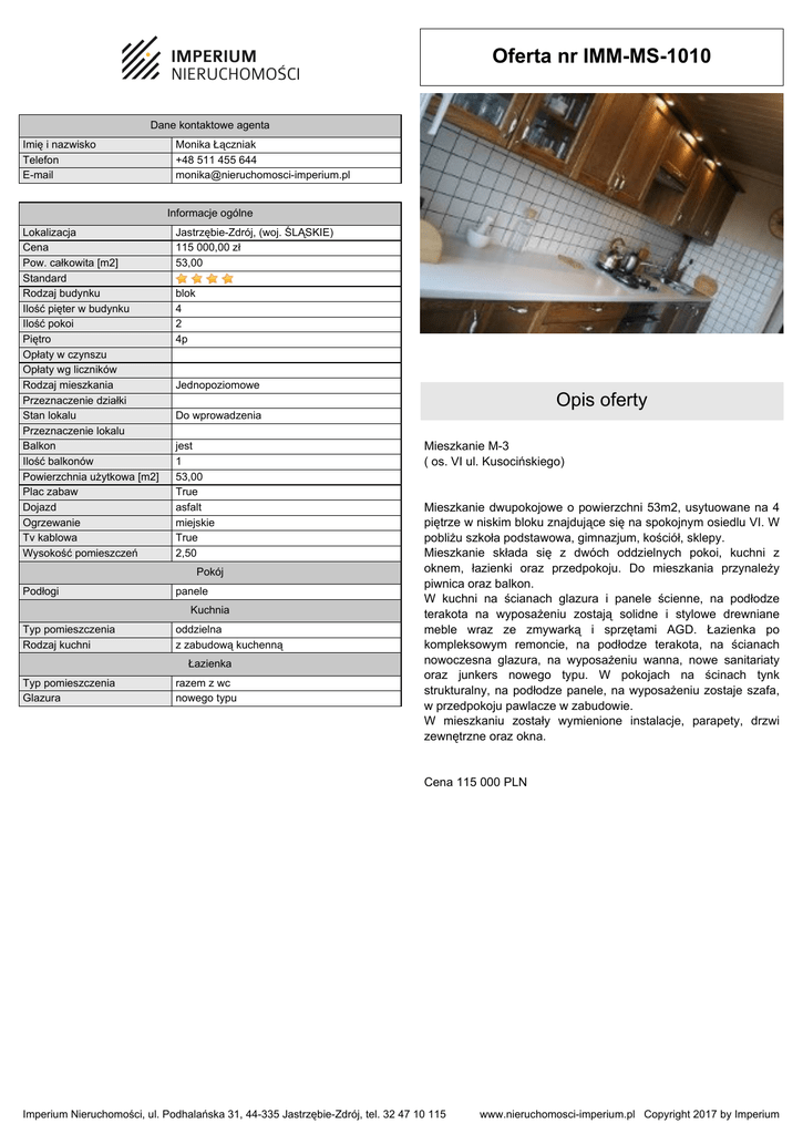Oferta nr IMM-MS-1010 - Imperium Nieruchomości