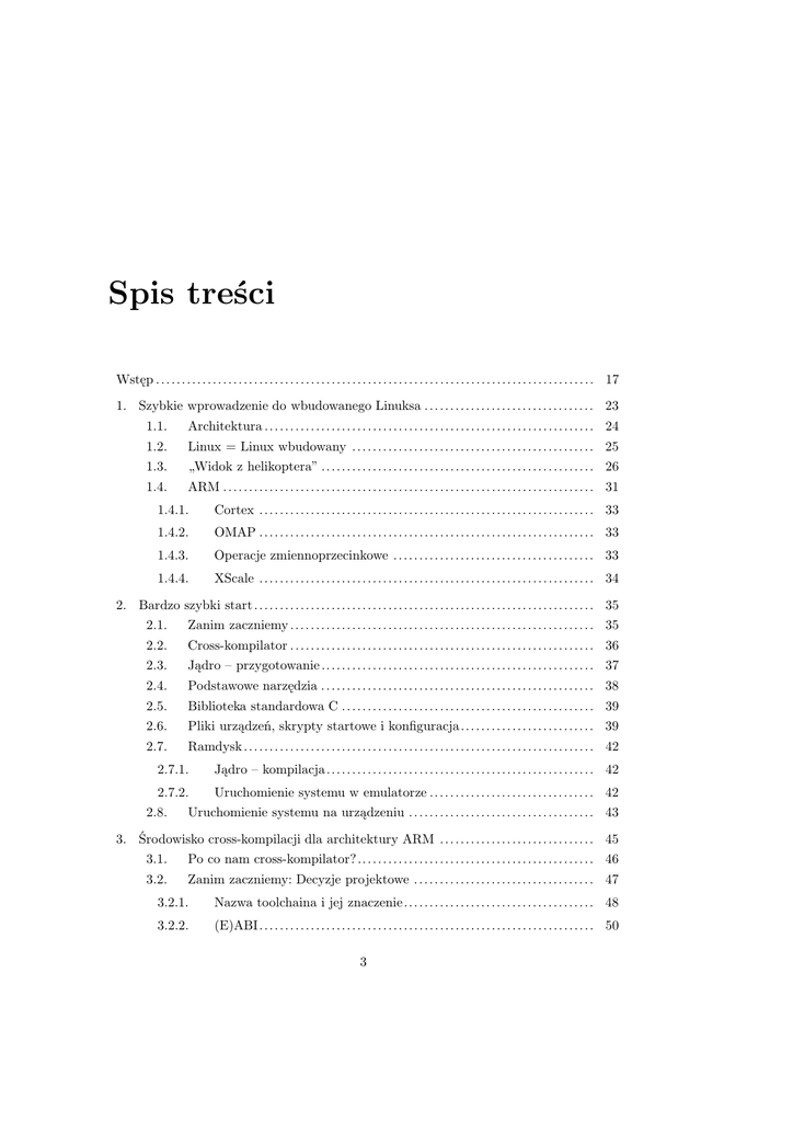 Spis treści Wstęp . . . . . . . . . . . . . . . . . . . . . . . . . . . . . . . . . . . . . . . . . . . . . . . . . . . . . . . . . . . . . . . . . . . . . . . . . . . . . . . . . . . . . 17 1. Szybkie wprowadzenie do wbudowanego Linuksa . . . . . . . . . . . . . . . . . . . . . . . . . . . . . . . . . 23 1.1. Architektura .. . . . . . . . . . . . . . . . . . . . . . . . . . . . . . . . . . . . . . . . . . . . . . . . . . . . . . . . . . . . . . . 24 1.2. Linux = Linux wbudowany . . . . . . . . . . . . . . . . . . . . . . . . . . . . . . . . . . . . . . . . . . . . . . . 25 1.3. „Widok z helikoptera” .. . . . . . . . . . . . . . . . . . . . . . . . . . . . . . . . . . . . . . . . . . . . . . . . . . . . 26 1.4. ARM . . . . . . . . . . . . . . . . . . . . . . . . . . . . . . . . . . . . . . . . . . . . . . . . . . . . . . . . . . . . . . . . . . . . . . . . 31 1.4.1. Cortex . . . . . . . . . . . . . . . . . . . . . . . . . . . . . . . . . . . . . . . . . . . . . . . . . . . . . . . . . . . . . . . . . 33 1.4.2. OMAP . . . . . . . . . . . . . . . . . . . . . . . . . . . . . . . . . . . . . . . . . . . . . . . . . . . . . . . . . . . . . . . . . 33 1.4.3. Operacje zmiennoprzecinkowe . . . . . . . . . . . . . . . . . . . . . . . . . . . . . . . . . . . . . . . 33 1.4.4. XScale . . . . . . . . . . . . . . . . . . . . . . . . . . . . . . . . . . . . . . . . . . . . . . . . . . . . . . . . . . . . . . . . . 34 2. Bardzo szybki start . . . . . . . . . . . . . . . . . . . . . . . . . . . . . . . . . . . . . . . . . . . . . . . . . . . . . . . . . . . . . . . . . . 35 2.1. Zanim zaczniemy .. . . . . . . . . . . . . . . . . . . . . . . . . . . . . . . . . . . . . . . . . . . . . . . . . . . . . . . . . . 35 2.2. Cross-kompilator . . . . . . . . . . . . . . . . . . . . . . . . . . . . . . . . . . . . . . . . . . . . . . . . . . . . . . . . . . . 36 2.3. Jądro – przygotowanie .. . . . . . . . . . . . . . . . . . . . . . . . . . . . . . . . . . . . . . . . . . . . . . . . . . . . 37 2.4. Podstawowe narzędzia . . . . . . . . . . . . . . . . . . . . . . . . . . . . . . . . . . . . . . . . . . . . . . . . . . . . . 38 2.5. Biblioteka standardowa C . . . . . . . . . . . . . . . . . . . . . . . . . . . . . . . . . . . . . . . . . . . . . . . . . 39 2.6. Pliki urządzeń, skrypty startowe i konfiguracja .. . . . . . . . . . . . . . . . . . . . . . . . . 39 2.7. Ramdysk . . . . . . . . . . . . . . . . . . . . . . . . . . . . . . . . . . . . . . . . . . . . . . . . . . . . . . . . . . . . . . . . . . . . 42 2.7.1. Jądro – kompilacja .. . . . . . . . . . . . . . . . . . . . . . . . . . . . . . . . . . . . . . . . . . . . . . . . . . . 42 2.7.2. Uruchomienie systemu w emulatorze .. . . . . . . . . . . . . . . . . . . . . . . . . . . . . . . 42 2.8. Uruchomienie systemu na urządzeniu . . . . . . . . . . . . . . . . . . . . . . . . . . . . . . . . . . . . 43 3. Środowisko cross-kompilacji dla architektury ARM . . . . . . . . . . . . . . . . . . . . . . . . . . . . . . 45 3.1. Po co nam cross-kompilator? .. . . . . . . . . . . . . . . . . . . . . . . . . . . . . . . . . . . . . . . . . . . . . 46 3.2. Zanim zaczniemy: Decyzje projektowe . . . . . . . . . . . . . . . . . . . . . . . . . . . . . . . . . . . 47 3.2.1. Nazwa toolchaina i jej znaczenie.. . . . . . . . . . . . . . . . . . . . . . . . . . . . . . . . . . . . 48 3.2.2. (E)ABI. . . . . . . . . . . . . . . . . . . . . . . . . . . . . . . . . . . . . . . . . . . . . . . . . . . . . . . . . . . . . . . . . 50 3 4 Spis treści 3.2.3. Wersja procesora i architektury.. . . . . . . . . . . . . . . . . . . . . . . . . . . . . . . . . . . . . 52 3.2.4. Zestawy instrukcji: ARM i Thumb . . . . . . . . . . . . . . . . . . . . . . . . . . . . . . . . . . 54 3.2.5. Kolejność bajtów w słowie . . . . . . . . . . . . . . . . . . . . . . . . . . . . . . . . . . . . . . . . . . . 55 3.2.6. Operacje zmiennoprzecinkowe . . . . . . . . . . . . . . . . . . . . . . . . . . . . . . . . . . . . . . . 56 3.2.7. Obsługa wątków . . . . . . . . . . . . . . . . . . . . . . . . . . . . . . . . . . . . . . . . . . . . . . . . . . . . . . 57 3.3. Zaczynamy: Przygotowanie systemu . . . . . . . . . . . . . . . . . . . . . . . . . . . . . . . . . . . . . . 58 3.3.1. Konto robocze .. . . . . . . . . . . . . . . . . . . . . . . . . . . . . . . . . . . . . . . . . . . . . . . . . . . . . . . . 58 3.3.2. Środowisko . . . . . . . . . . . . . . . . . . . . . . . . . . . . . . . . . . . . . . . . . . . . . . . . . . . . . . . . . . . . 59 3.4. Pliki nagłówkowe jądra . . . . . . . . . . . . . . . . . . . . . . . . . . . . . . . . . . . . . . . . . . . . . . . . . . . . 60 3.5. GMP . . . . . . . . . . . . . . . . . . . . . . . . . . . . . . . . . . . . . . . . . . . . . . . . . . . . . . . . . . . . . . . . . . . . . . . . 61 3.6. MPFR . . . . . . . . . . . . . . . . . . . . . . . . . . . . . . . . . . . . . . . . . . . . . . . . . . . . . . . . . . . . . . . . . . . . . . 61 3.7. MPC . . . . . . . . . . . . . . . . . . . . . . . . . . . . . . . . . . . . . . . . . . . . . . . . . . . . . . . . . . . . . . . . . . . . . . . . 61 3.8. Zlib . . . . . . . . . . . . . . . . . . . . . . . . . . . . . . . . . . . . . . . . . . . . . . . . . . . . . . . . . . . . . . . . . . . . . . . . . . 62 3.8.1. Binutils . . . . . . . . . . . . . . . . . . . . . . . . . . . . . . . . . . . . . . . . . . . . . . . . . . . . . . . . . . . . . . . . 62 3.9. GCC – wersja pomocnicza . . . . . . . . . . . . . . . . . . . . . . . . . . . . . . . . . . . . . . . . . . . . . . . . 65 3.10. Biblioteka standardowa C . . . . . . . . . . . . . . . . . . . . . . . . . . . . . . . . . . . . . . . . . . . . . . . . . 66 3.10.1. uClibc . . . . . . . . . . . . . . . . . . . . . . . . . . . . . . . . . . . . . . . . . . . . . . . . . . . . . . . . . . . . . . . . . . 67 3.10.2. eglibc. . . . . . . . . . . . . . . . . . . . . . . . . . . . . . . . . . . . . . . . . . . . . . . . . . . . . . . . . . . . . . . . .