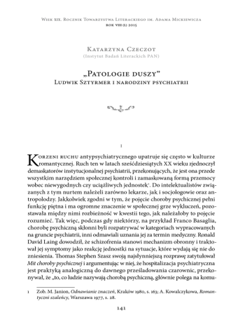 Wiek XIX . Rocznik Towarzystwa Literackiego im. Adama Mickiewicza rok VIii (L) 2015 Katarzyna Czeczot (Insty tut Badań Literackich PAN) „Patologie duszy” Ludwik Sztyrmer i narodziny psychiatrii K i orzeni ruchu antypsychiatrycznego upatruje się często w kulturze romantycznej. Ruch ten w latach sześćdziesiątych XX wieku zjednoczył demaskatorów instytucjonalnej psychiatrii, przekonujących, że jest ona przede wszystkim narzędziem społecznej kontroli i zamaskowaną formą przemocy wobec niewygodnych czy uciążliwych jednostek1. Do intelektualistów związanych z tym nurtem należeli zarówno lekarze, jak i socjologowie oraz antropolodzy. Jakkolwiek zgodni w tym, że pojęcie choroby psychicznej pełni funkcję piętna i ma ogromne znaczenie w społecznej grze wykluczeń, pozostawała między nimi rozbieżność w kwestii tego, jak należałoby to pojęcie rozumieć. Tak więc, podczas gdy niektórzy, na przykład Franco Basaglia, chorobę psychiczną skłonni byli rozpatrywać w kategoriach wypracowanych na gruncie psychiatrii, inni odmawiali uznania jej za termin medyczny. Ronald David Laing dowodził, że schizofrenia stanowi mechanizm obronny i traktował jej symptomy jako reakcję jednostki na sytuacje, które wydają się nie do zniesienia. Thomas Stephen Szasz swoją najsłynniejszą rozprawę zatytułował Mit choroby psychicznej i argumentując w niej, że hospitalizacja psychiatryczna jest praktyką analogiczną do dawnego prześladowania czarownic, przekonywał, że „to, co ludzie nazywają chorobą psychiczną, głównie polega na komu1 Zob. M. Janion, Odnawianie znaczeń, Kraków 1980, s. 163; A. Kowalczykowa, Romantyczni szaleńcy, Warszawa 1977, s. 28. 141 • Katarzyna Czeczot • nikatach wyrażających niemożliwe do zaakceptowania idee, często ujęte w niespotykane formy słowne”2. W Micie choroby psychicznej Szasz wykazywał między innymi, że fałszywe założenia kryją się już u samych źródeł psychiatrii. Jeśli bowiem chorobę zdefiniować jako „dewiację od pewnej jasno określonej normy”3, to okaże się, że diagnostyka chorób psychicznych odwołuje się do standardów społecznych, etycznych lub prawnych i nie ma powodu, dla którego po środki lecznicze sięga się wówczas na gruncie medycyny. Wniosek, jaki stąd płynął, powtarzali wszyscy antypsychiatrzy: za praktyką hospitalizacji stoi dążenie do zachowania społecznego ładu. Terapia zaś, co wydobywał między innymi David R. Cooper, nie polega na niczym innym niż wykształcaniu u pacjentów postawy konformizmu. Wykreowana przez antypsychiatrię figura szaleńca miała więc w sobie charakterystyczną dwoistość: był on zarazem niewinną ofiarą represyjnego społeczeństwa, jak i kontestatorem domagającym się prawa do indywidualnej ekspresji. Wraz z tą figurą oraz krytyką tradycyjnych instytucji, jak rodzina, szkoła czy kościół zarysowuje się pokrewieństwo pomiędzy tezami Szasza, Lainga czy Coopera a programem kontrkultury rozwijającej się od lat sześćdziesiątych. Ale szaleństwo rozumiane jako wykluczające piętno i bunt zarazem świadczy również o zbieżności stanowiska antypsychiatrów i wrażliwości romantycznej. Wprawdzie Szasz w jednym z tekstów zarzuca Cooperowi „romantyzację” obłąkanych, jednak rozumie ją przede wszystkim jako ich apologię4, nie dostrzegając, że jego własne ujęcie, które osobom hospitalizowanym przyznaje status kozła ofiarnego, jest romantyczne par excellence. Wszak wprowadzając na scenę szaleńca jako postać mającą zarówno dostęp do prawdy, jak i odwagę, by ją wypowiedzieć (postać „autentyczną i szlachetną”, rzekłby Szasz), romantyzm odnawia zaledwie trop, silnie obecny w kulturze europejskiej od czasów antyku. Tym zaś, co decyduje o wywrotowym charakterze dziewiętnastowiecznych przedstawień obłędu, będzie połączenie ich z krytyką systemu społecznego, deklaracjami indywidualizmu, sprzeciwem wobec tradycyjnej antropologii, poszukującej prawdy o człowieku w tym, co powszechne. Nigdy dotychczas – tak bezapelacyjnie i otwarcie – nie przyznano jednostce prawa do sprzeciwu i odrzucenia racji większości. Kreśląc zaś konflikt między indywiduum a zbiorowością, literatura romantyczna pozostaje zgodna ze 2 3 4 T. Szasz, Mit choroby psychicznej, przeł. K. Jankowski, w: Przełom w psychologii, wyb. i wstęp K. Jankowski, przeł.: K. Jankowski, A. Kołyszko, P. Kołyszko, Warszawa 1978, s. 234. Tamże, s. 228. Zob. wypowiedź Marii Janion w: Galernicy wrażliwości, wyb. oprac. i red. M. Janion i S. Rosiek, Gdańsk 1981, s. 360–361. 142 • Patologie duszy. Ludwik Sztyrmer i narodziny psychiatrii • znaną formułą Antonina Artauda: „Bo obłąkany to jest także ten człowiek, którego społeczeństwo nie chciało wysłuchać i któremu chciało przeszkodzić w wypowiedzeniu prawd nie do zniesienia”5. Dług, jaki antypsychiatria zaciąga u kultury romantycznej, ma jednak bardziej skomplikowany charakter. Pierwsza połowa XIX wieku to nie tylko czas manifestów indywidualizmu, lecz również moment, w którym psychiatria jako taka zaczyna istnieć. Romantyzm, można powiedzieć, rozwija się w cieniu dwóch rewolucji – oprócz francuskiej ma miejsce pierwsza rewolucji psychiatryczna6. U schyłku XVIII wieku następuje bowiem znacząca zmiana w sposobach postrzegania, a także traktowania ludzi dotkniętych obłędem: Obłąkani, którzy dotychczas uważani byli za pozbawione uczuć bestie, dzikie zwierzęta, które powinny być trzymane w ryzach za pomocą łańcuchów, bata, kaftanów bezpieczeństwa, okratowanych okien i zamkniętych cel, teraz postrzegani byli raczej jako zasługujące na litość istoty ludzkie, którym można przywrócić zdrowie poprzez troskliwą opiekę.7 Za kluczowe wydarzenie rewolucji psychiatrycznej – odpowiadające zburzeniu Bastylii w dziejach rewolucji francuskiej – uznane zostanie rozkucie z łańcuchów podopiecznych Salpêtriè