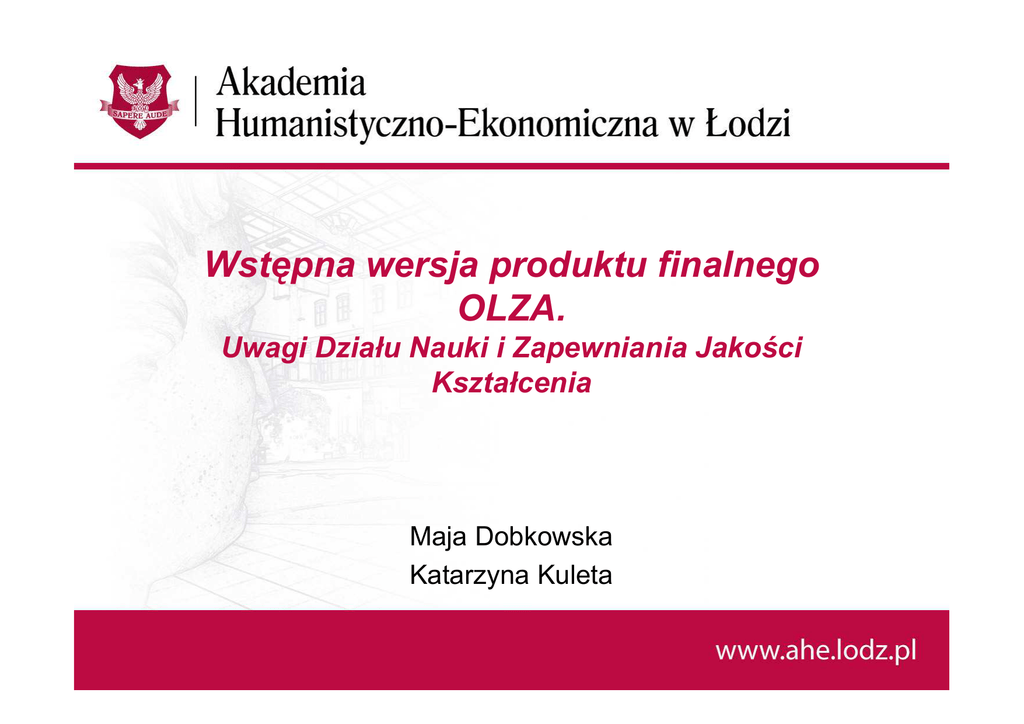 Prezentacja uwag Działu Nauki i Zapewnienia Jakości Kształcenia