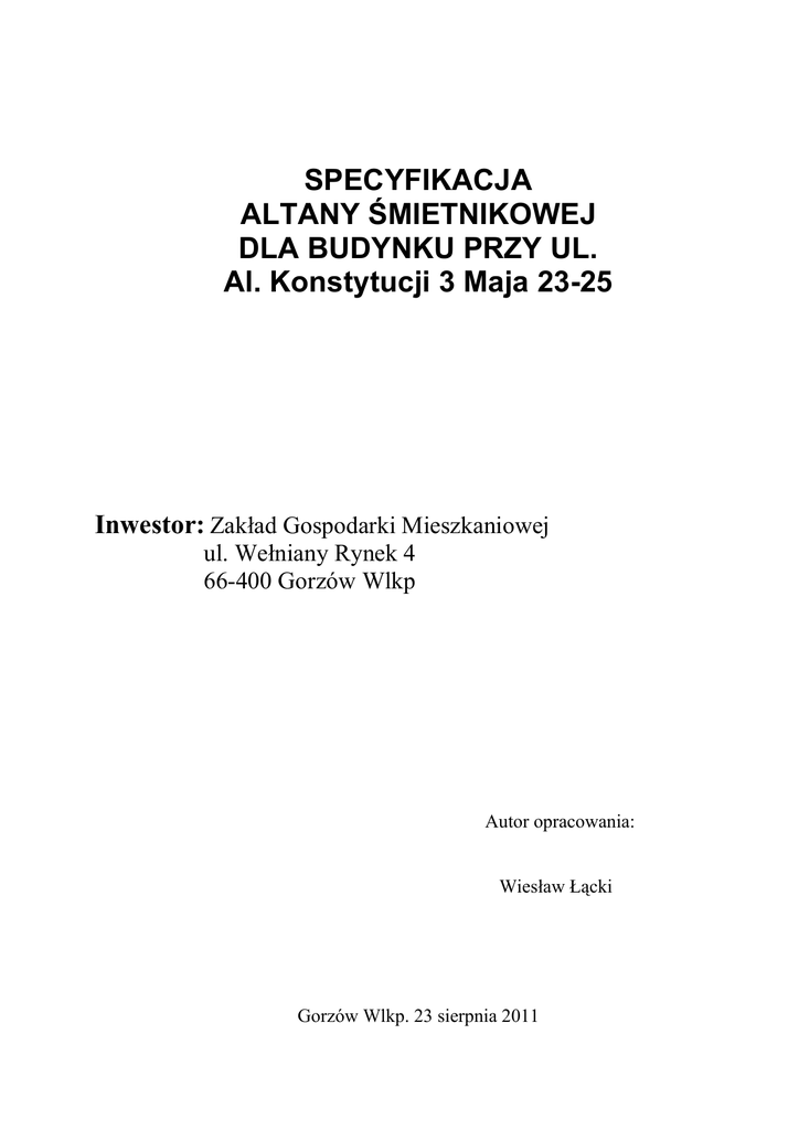 Specyfikacja altany śmietnikowej Konstytucji 3 Maja 23-25