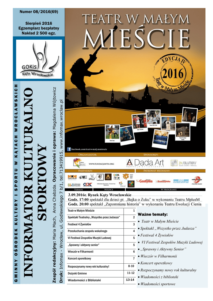 Informator kulturalno sportowy nr 08/2016 (69) sierpień2016