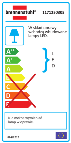 1171250305 W skład oprawy wchodzą wbudowane lampy LED. L E D Nie można wymieniać lamp w oprawie. 874/2012