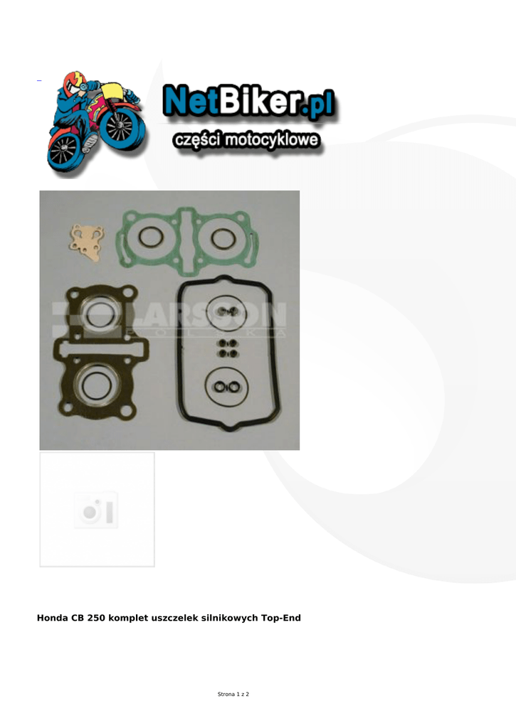 Honda CB 250 komplet uszczelek silnikowych Top-End Strona 1 z 2 TOP-END – uszczelki silnikowe do naprawy górnych partii silnika, zawiera między innymi: uszczelkę cylindra, głowicy, pokrywy zaworowej, uszczelniacze zaworowe, uszczelniacze kolektora wydechowego. UWAGA! Towar na zamówienie, czas realizacji do 14 dni! Strona 2 z 2
