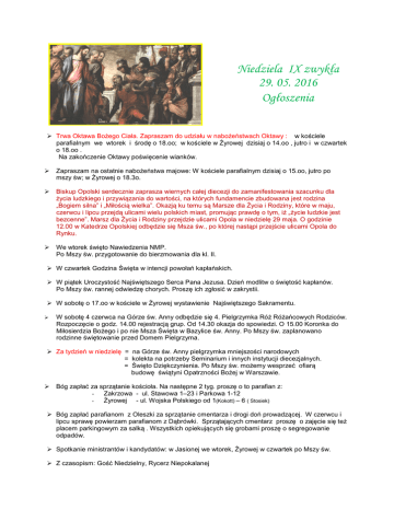 Niedziela IX zwykła 29. 05. 2016 Ogłoszenia